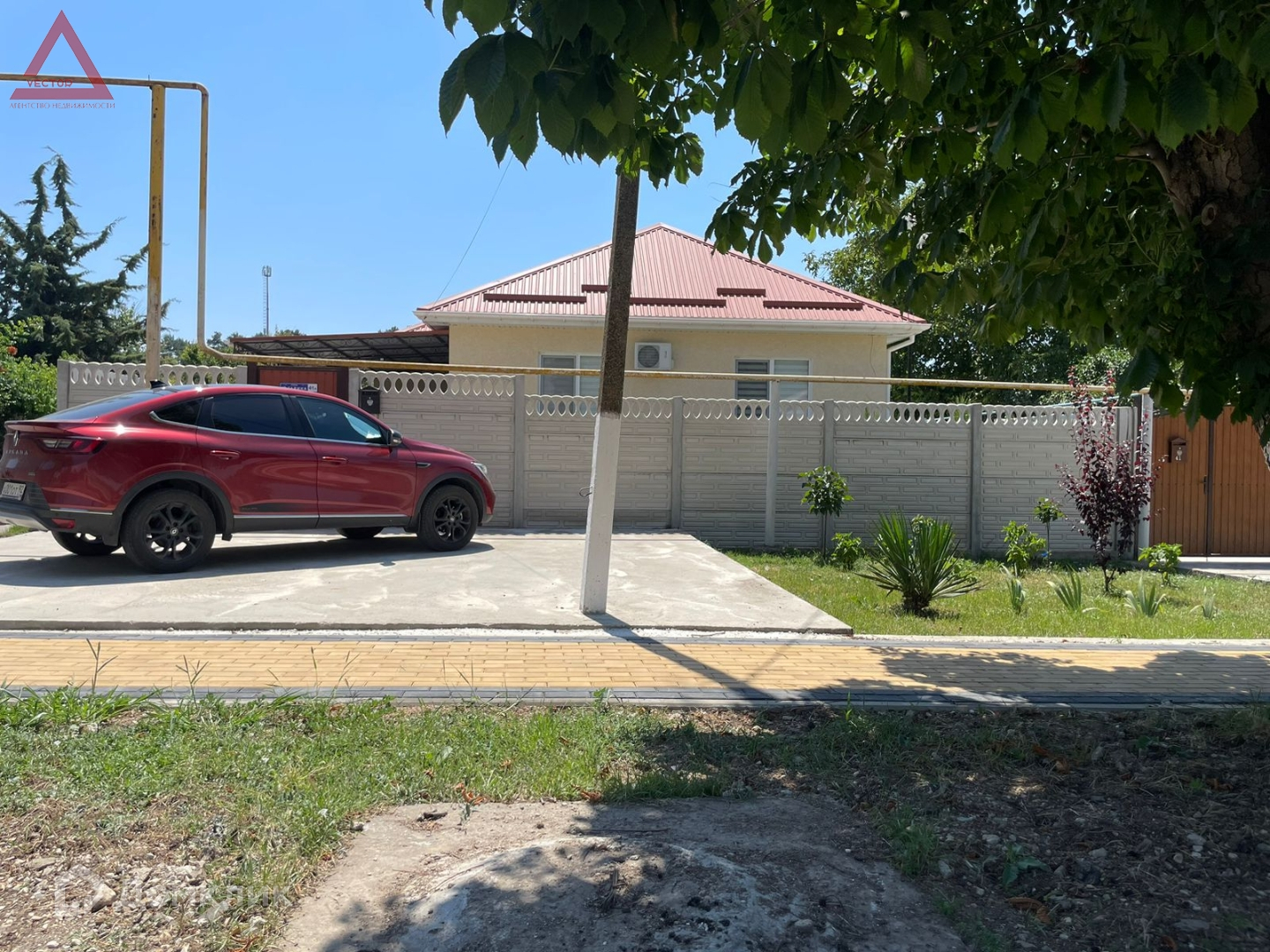 Участок ровный прямоугольной формы, с плодоносящими деревьями. При выезде парковка на 2 авто (откатные ворота для въезда во двор).