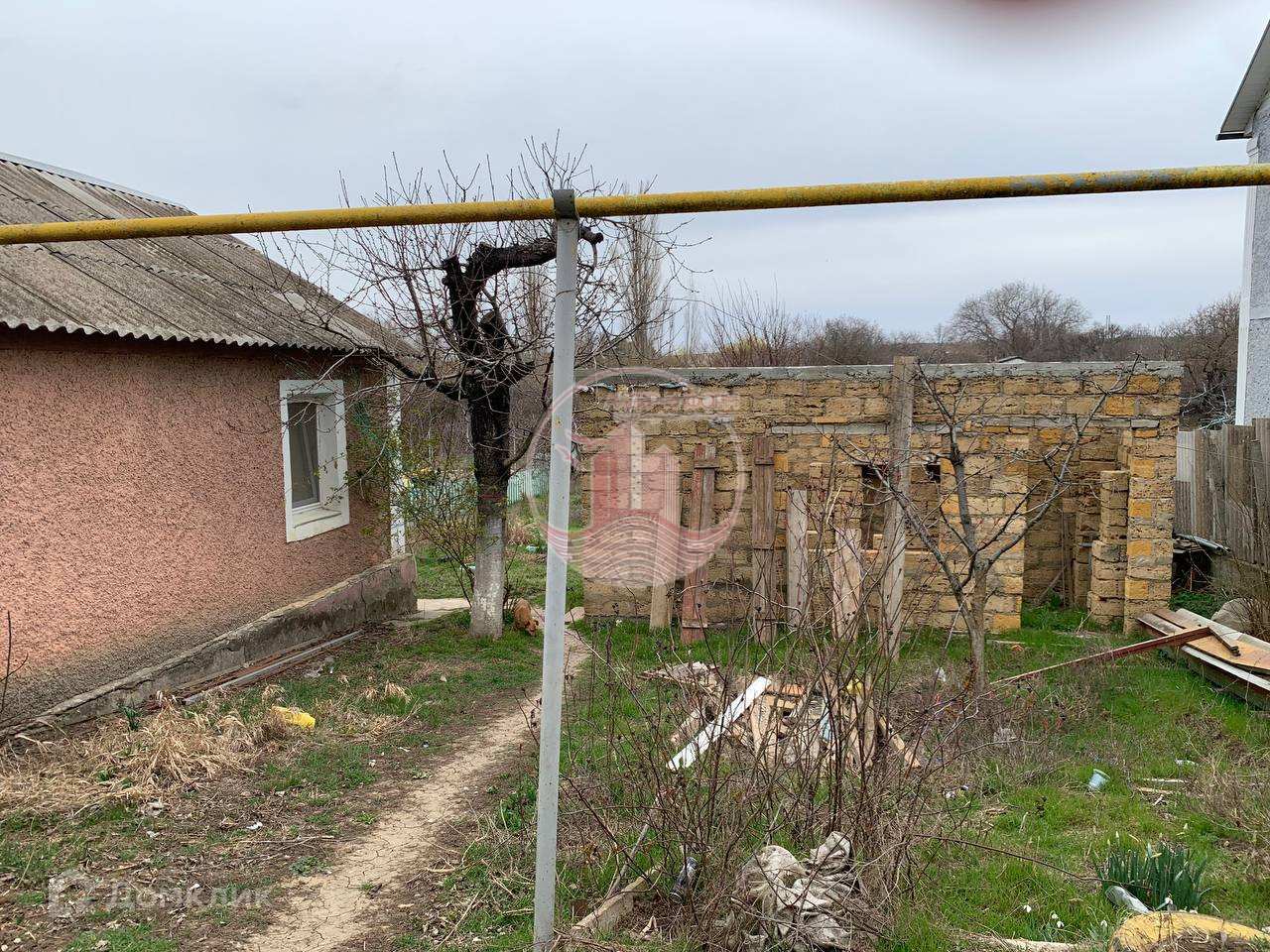 На территории стоит недострой, планировался гостевой дом для сдачи отдыхающим.  К дому подходит асфальтовая дорога.