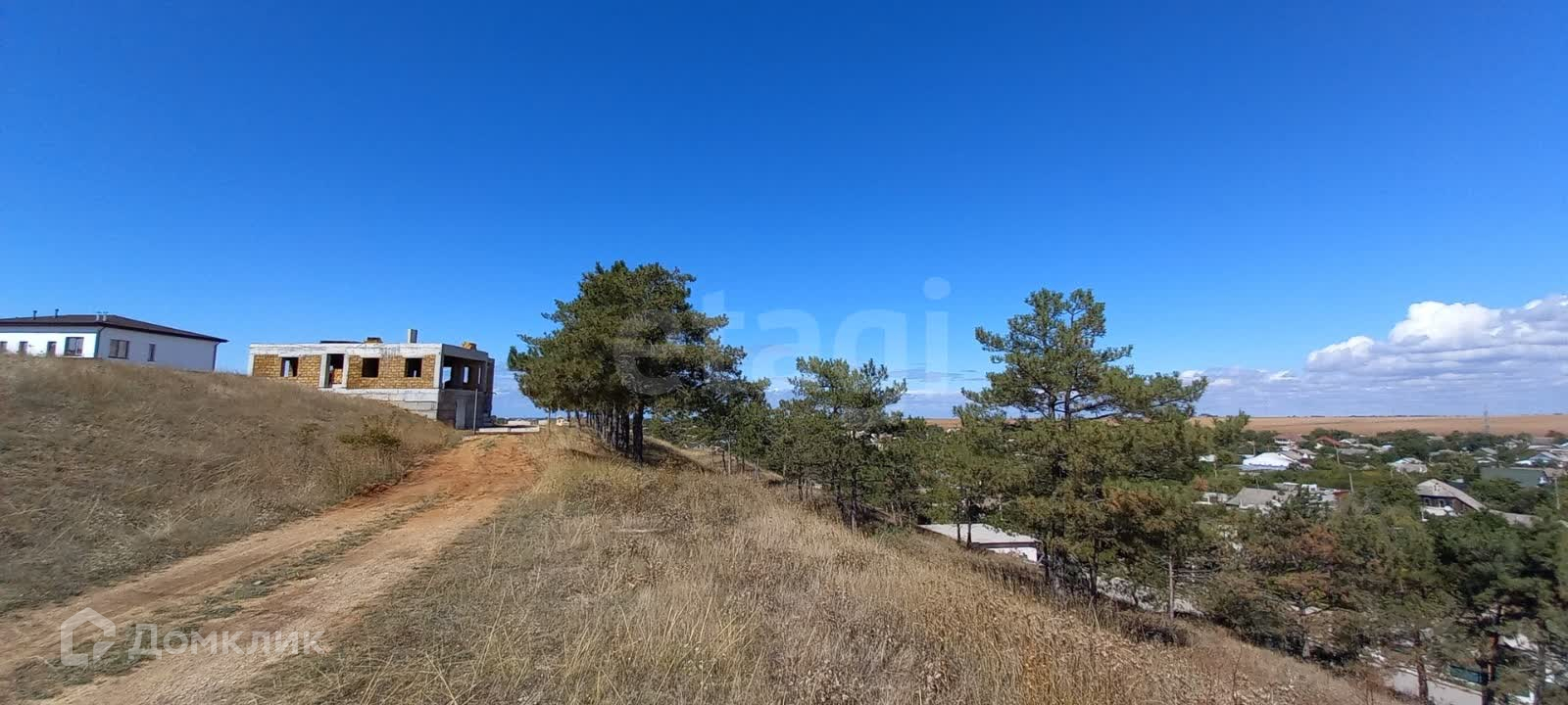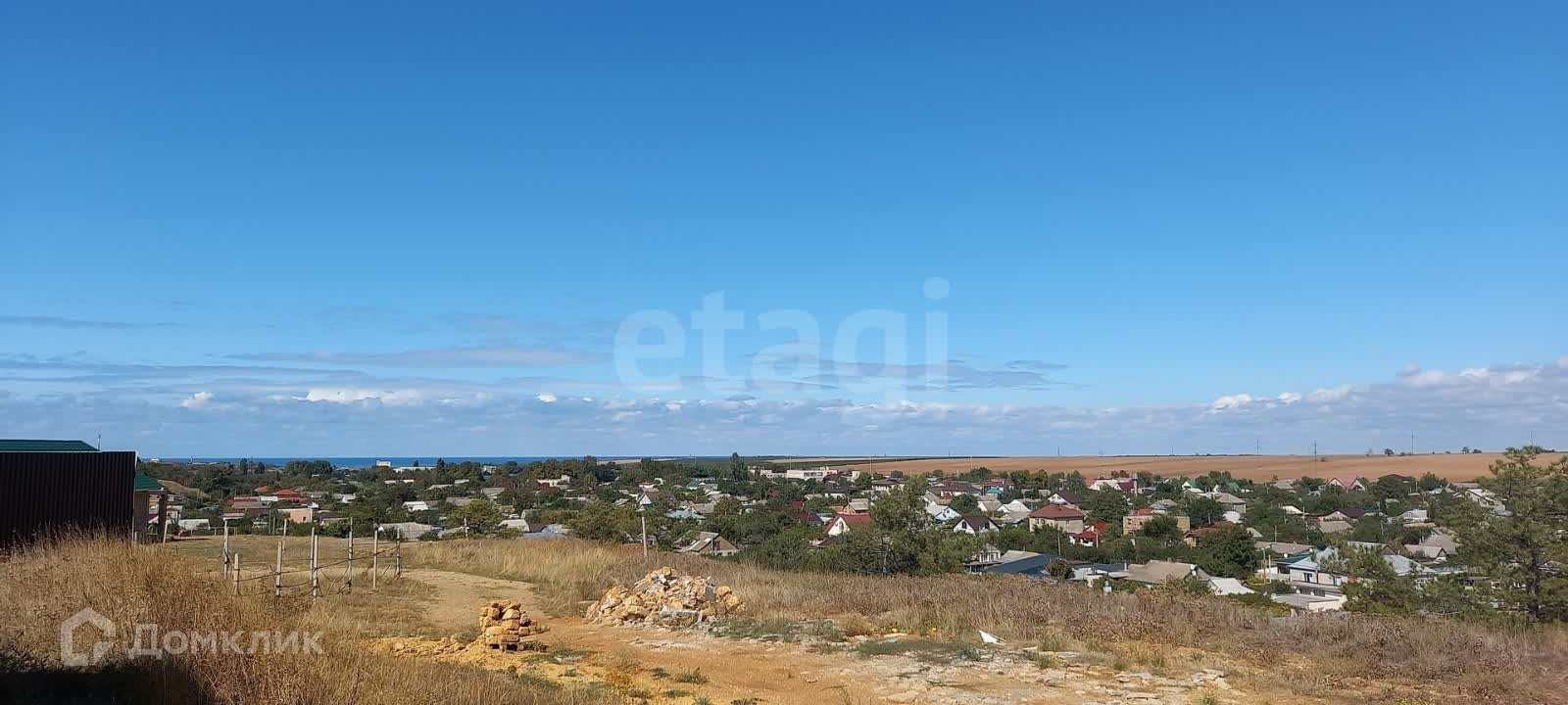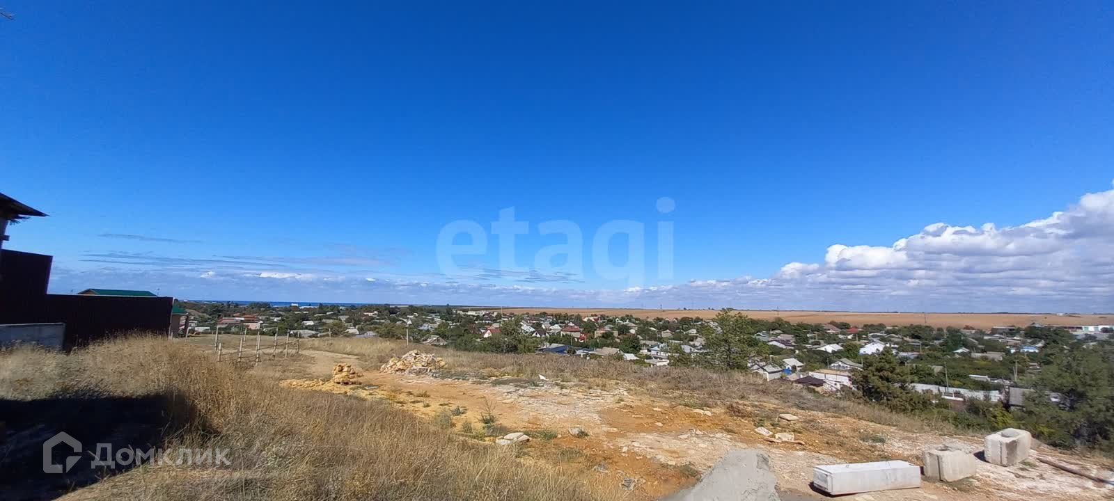 В поселке развитая инфраструктура: школа, детский сад, магазины, аптека, поликлиника. До городского пляжа 10 минут на машине (всего 5 км).С участка открывается красивый вид на поселок!