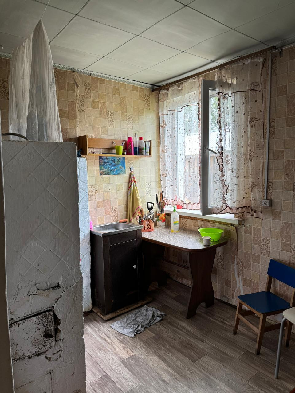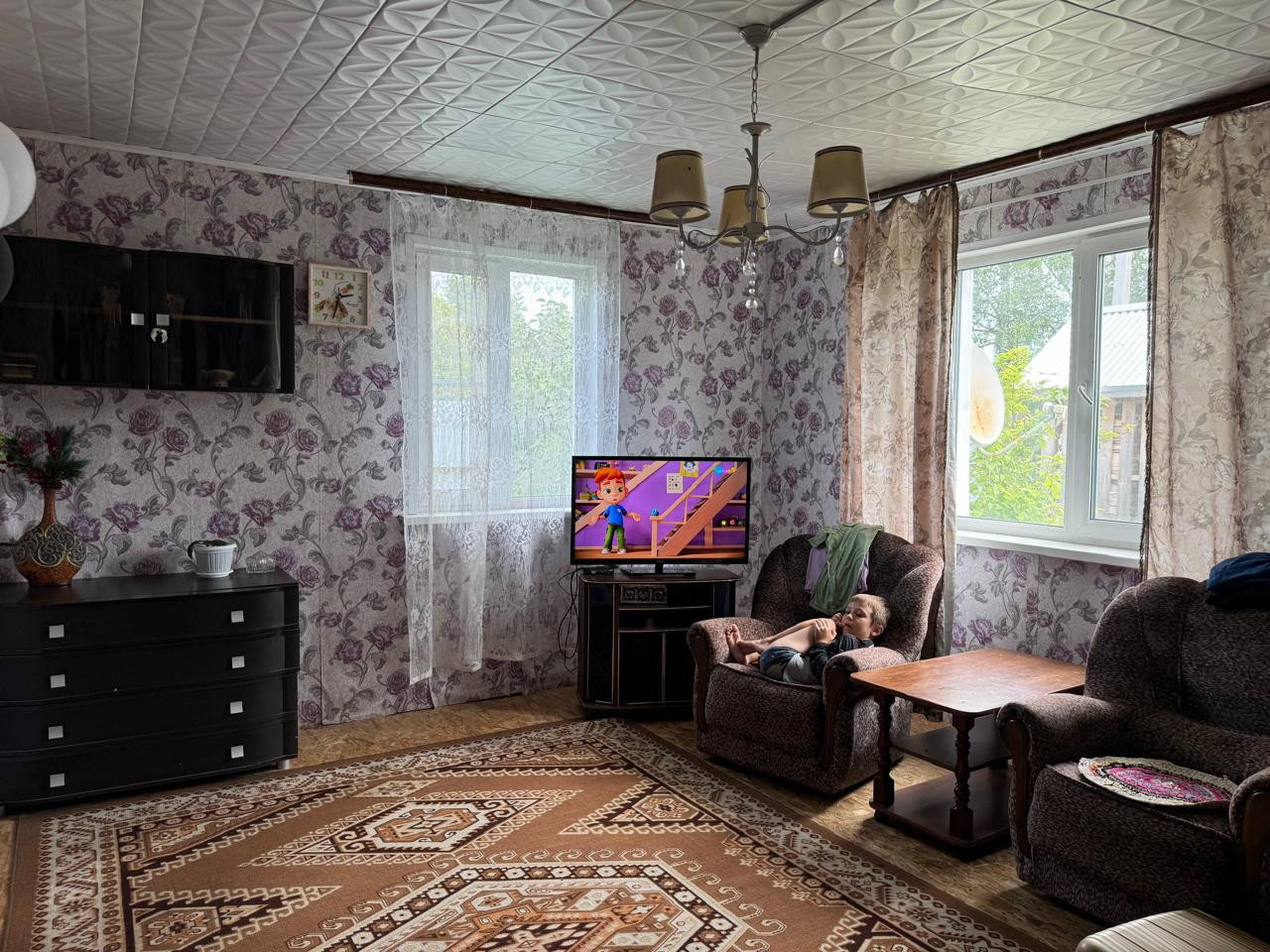 Сам дом щитовой, обложен кирпичом. В квартире 3 жилых комнаты, кухня, окна ПВХ. Отопление печное. Сделан косметический ремонт.