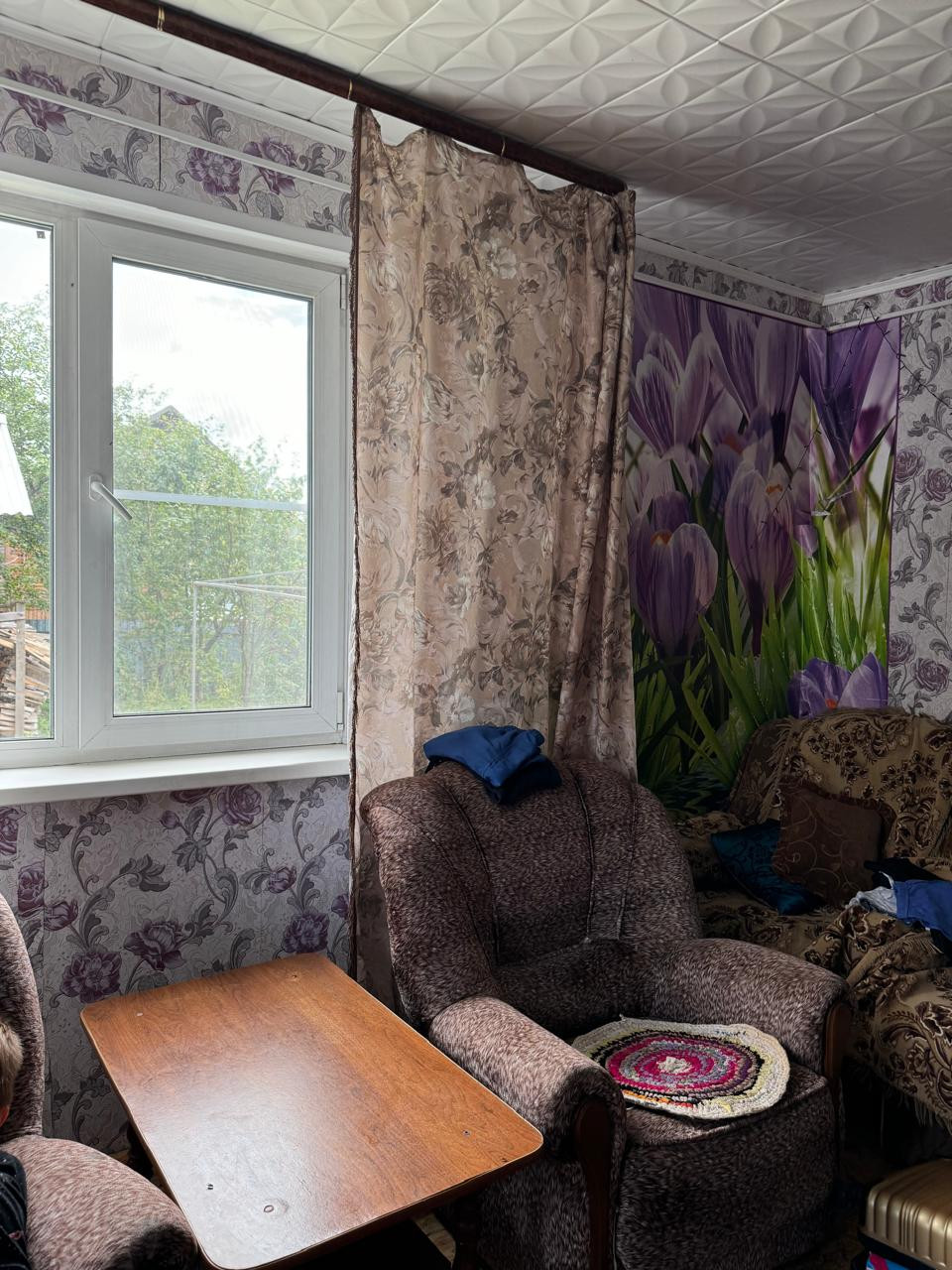 Вода в квартире подведена, а также во дворе колодец. Газ – баллон. Мебель частично остается.