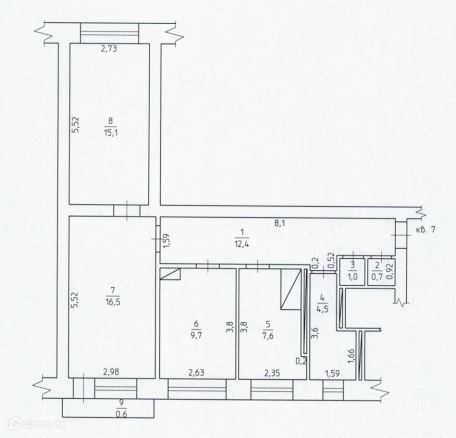 Площадь комнат (кв. м.): 09.70,16.50,15.10