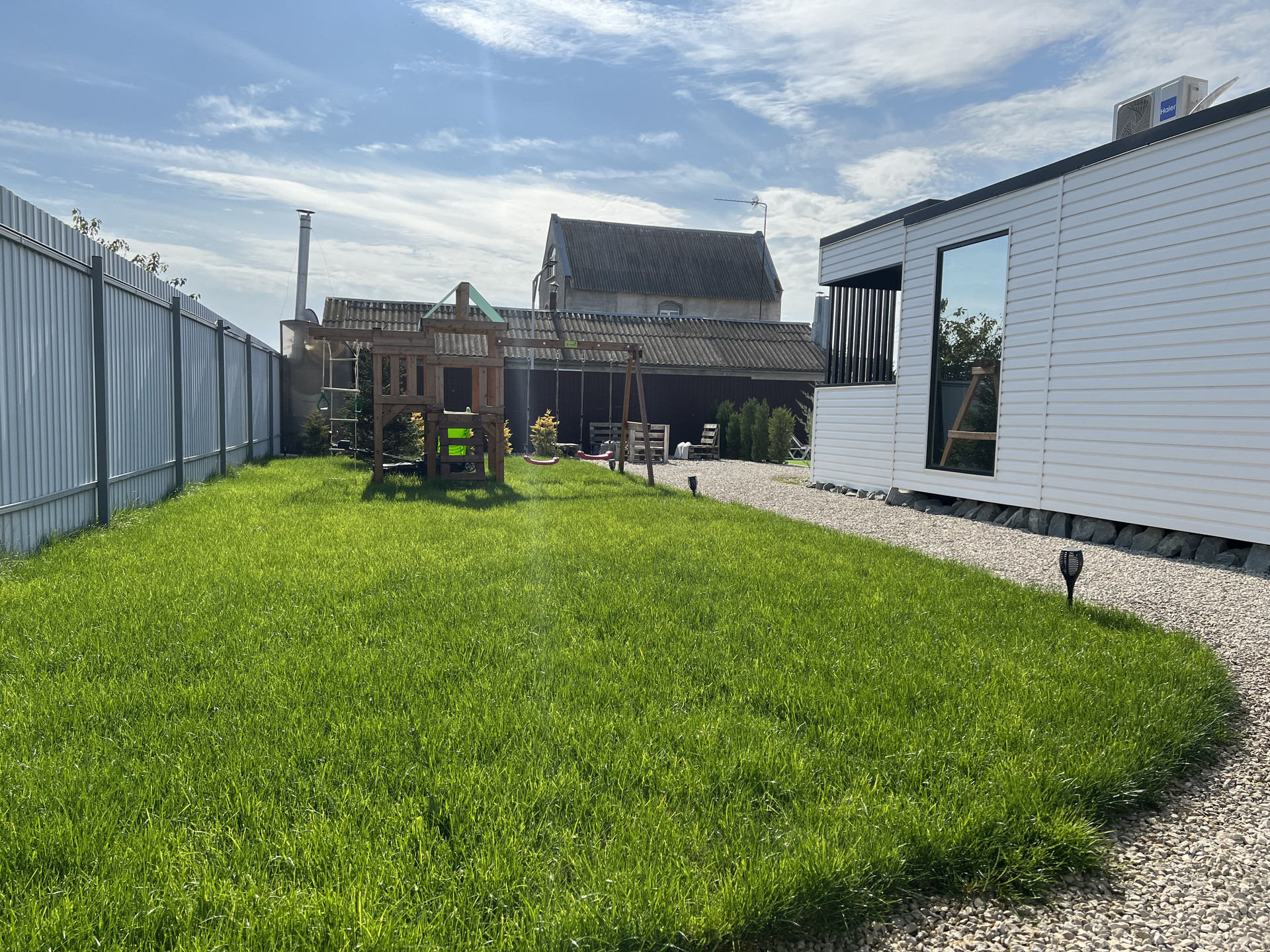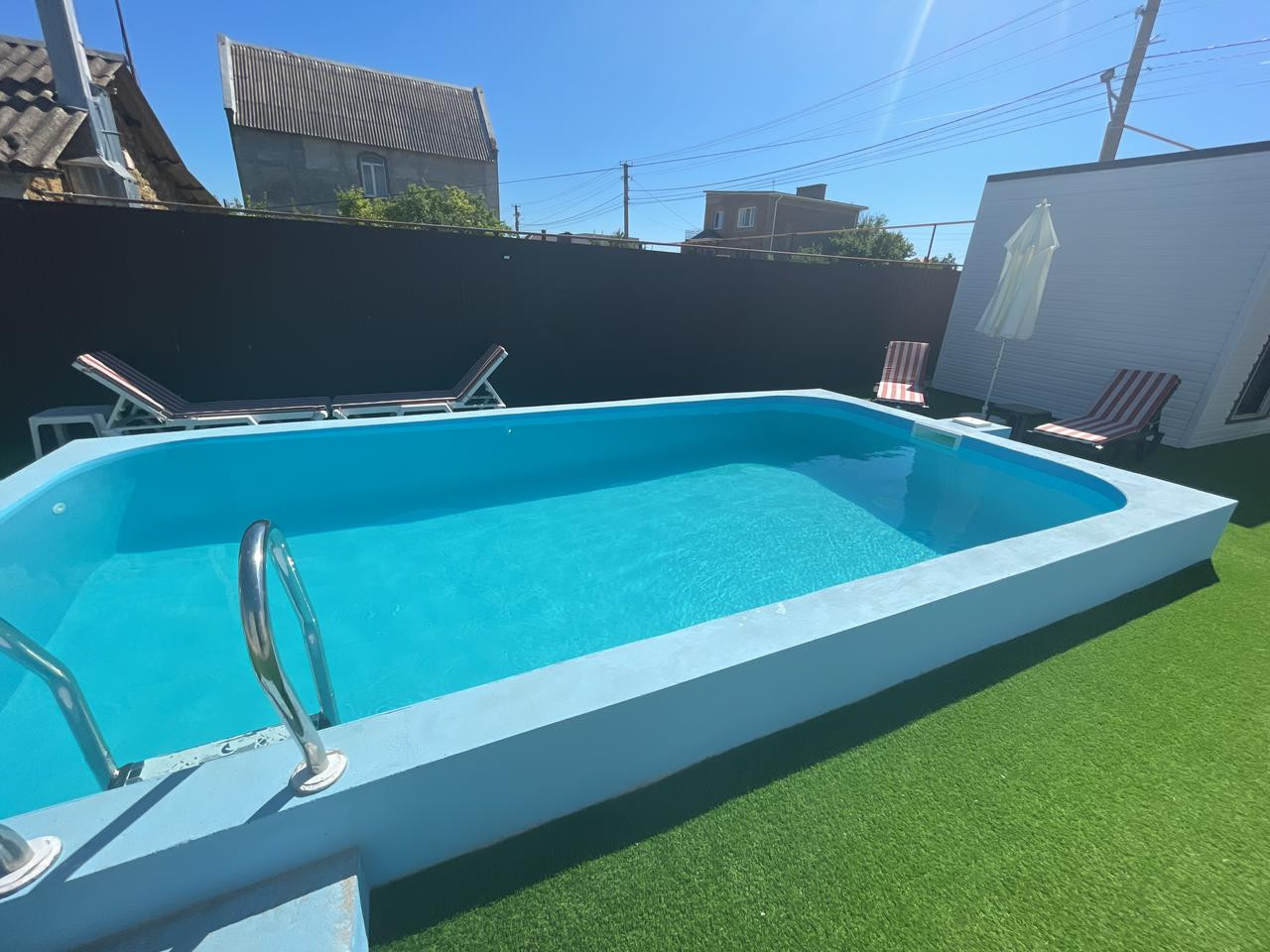 В ближайшем пригороде города курорт Евпатория .Вашему вниманию  дом  57кв.м. на участке 7 соток.  Дом изготовлен из калиброванного бруса, и выполнены в современном стиле.  - Кровельное покрытие выполнено жидким полимерным составом - Интегрированная водосточная система - Утепление - Оконные и входные конструкции с использованием энергосберегающих стеклопакетов Фасады: - штукатурка + декоративное покрытие+ окраска+декоративные элементы фасада Сети скрытого монтажа: электрика,водоснабжение, водоотведение. Приточная вытяжка вентиляция скрытого монтажа+вентиляционная установка .    Подходит  как для бизнеса аренды, так и для круглогодичного проживания.Для этого есть все условия: - отопление в виде теплых полов + кондиционер зима-лето; -централизованная вода + своя глубокая скважина, установлен качественный бойлер.; - канализация «септик» - газ идет по улице, есть возможность подключения в дом.  Выполнен качественный ремонт в стиле Хай-тек. Внутри дома дизайнерская мебель и вся необходимая бытовая техника. Проведен Интернет, смарт-ТВ с плазменными телевизорами по 42 дюйма.  В доме изолированная спальня, просторная кухня-гостиная с витражными окнами, из которой есть отдельный выход на крытую террасу с видом на бассейн.   Инфраструктура на территории участка заслуживает отдельного внимания.  Во дворе есть все необходимое для проведения классного отдыха в любое время года:  - Бассейн - Лаунч-зона находится вокруг чаши для костра и укомплектована садовой мебелью.  - Мангальная зона с мойкой и столешницей для удобства приготовления. - Игровая зона в виде детской площадки, горки, качели.  - По участку высажен натуральный газон, сосны, ели и можжевельник.  - Установлен автополив. - Дорожки по территории выложены из гравия.  Вся территория участка освещается бордюрными фонарями, а дом подсвечивается светодиодными лампами, что особенно красиво смотрится в вечернее время.  Дом в 2-х км от города Евпатория. На автомобиле 5 минут до лучшего песчаного пляжа «Аква».Обмен на Авто Тойота Ленд Крузер ,Прадо ,Лексус  с вашей доплатой, ВОЗМОЖНА ИПОТЕКА,торг уместен