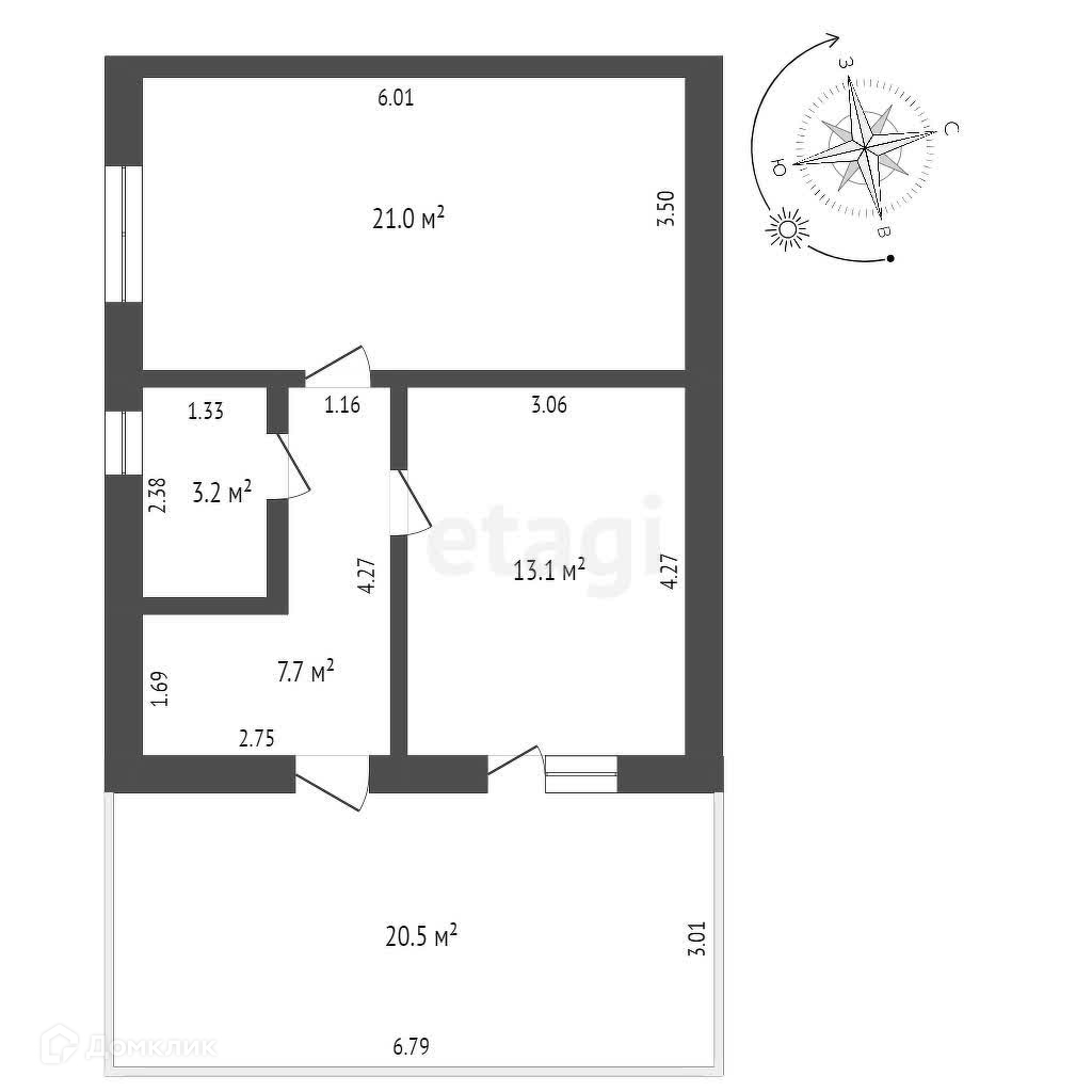 Общая площадь 70.7 м2