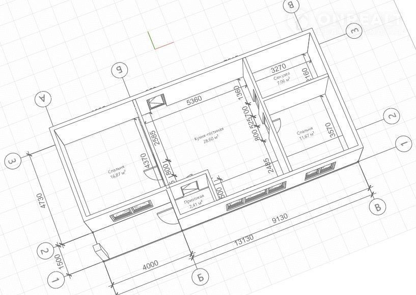 Кухня гостиная – 28.6 м. кв.