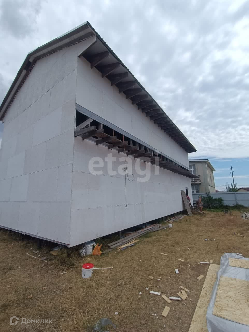 Море находится в 1 км, город Евпатория — 11 км, рядом асфальтированная дорога. Год строительства — 2024.