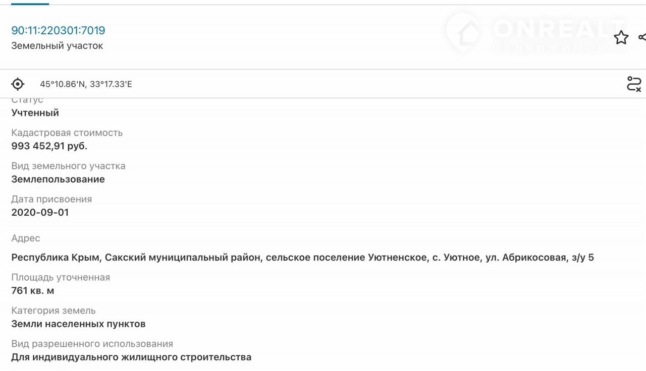 Участок под ИЖС, 7.6 сот. на продажу в селе Уютном, Абрикосовая улица