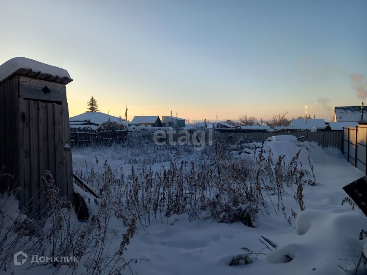 Газ проходит по улице. На плодородном земельном участке расположен дровник.