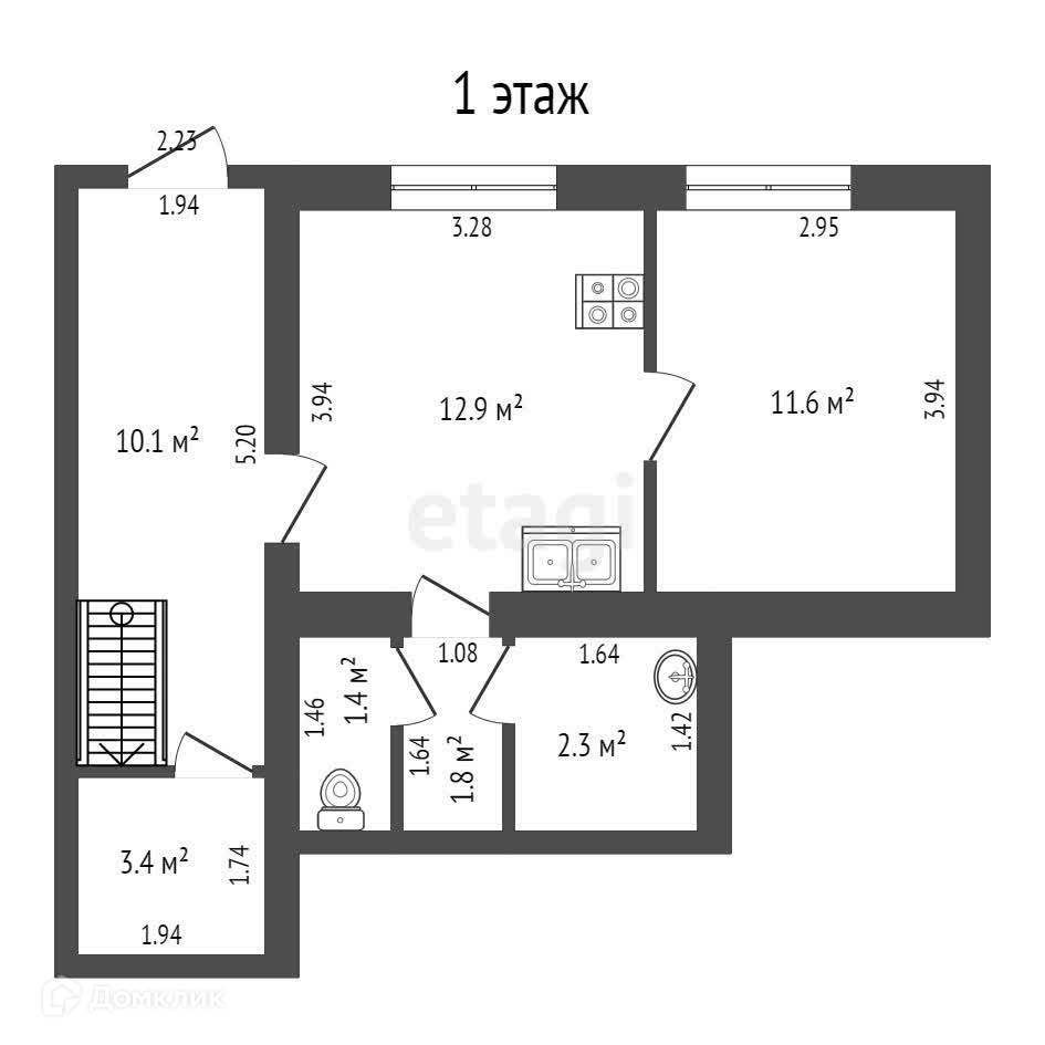 2-этажный дом, 100 м2, на продажу в селе Уйском, улица Чечёткина, 24