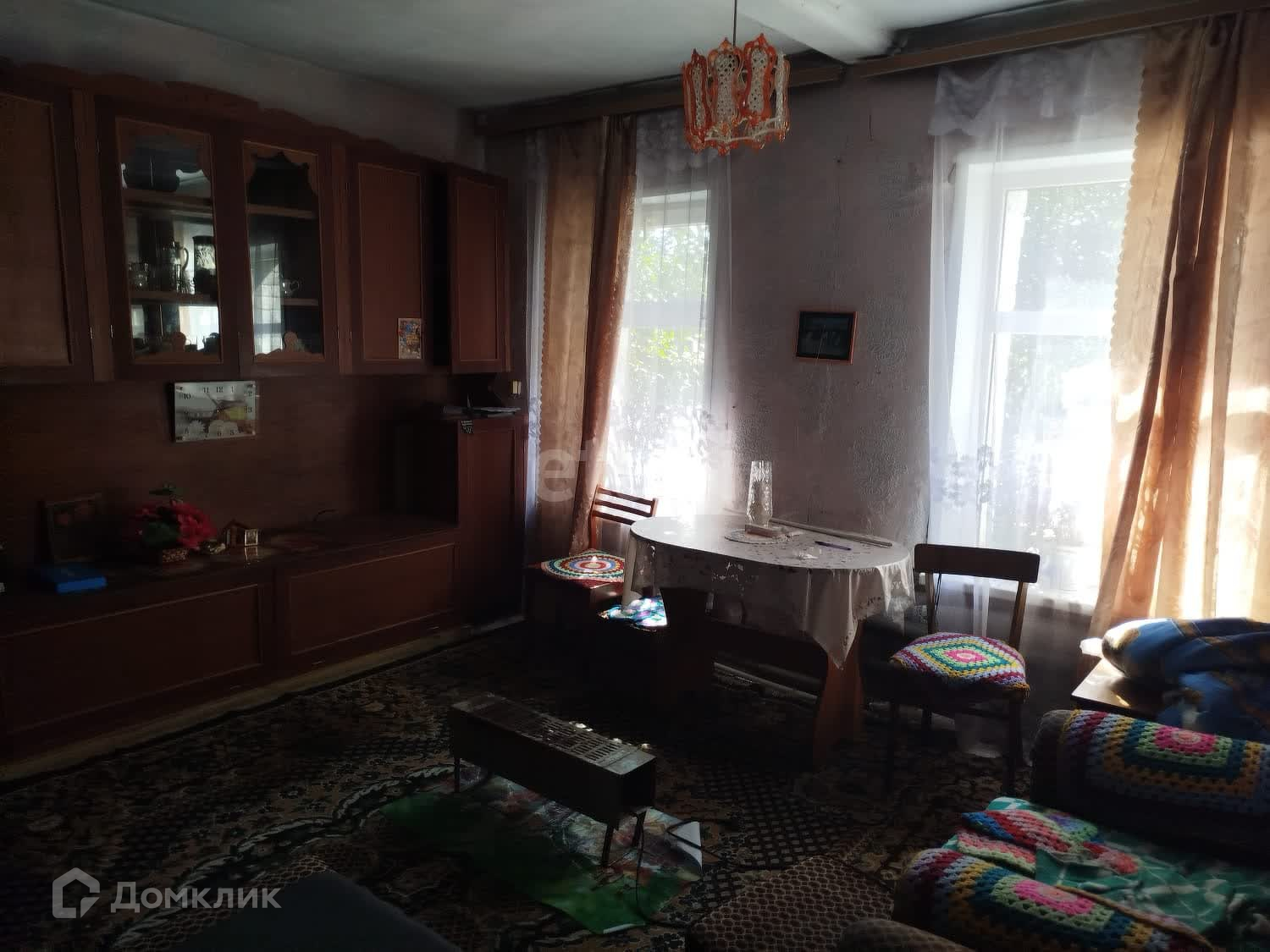 В доме пластиковые окна,пол деревянный, сверху постелен линолеум.