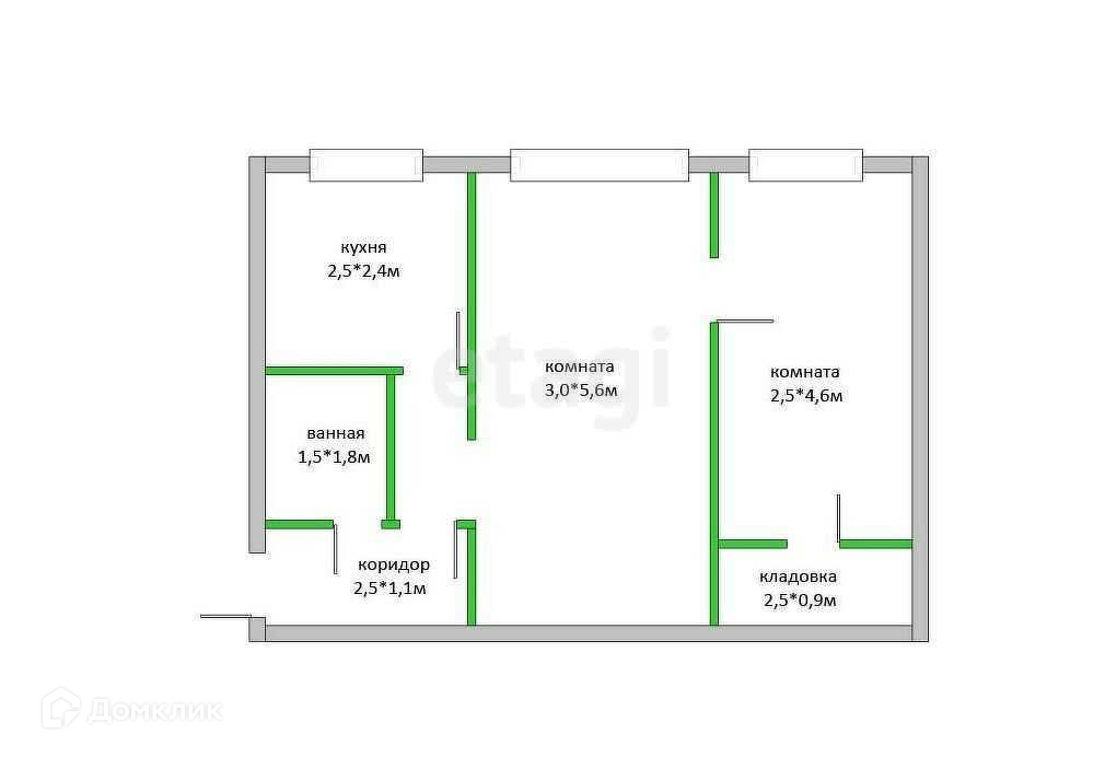 Площадь кухни 6 м2