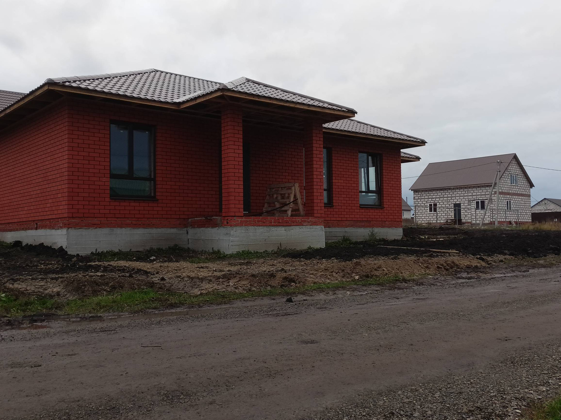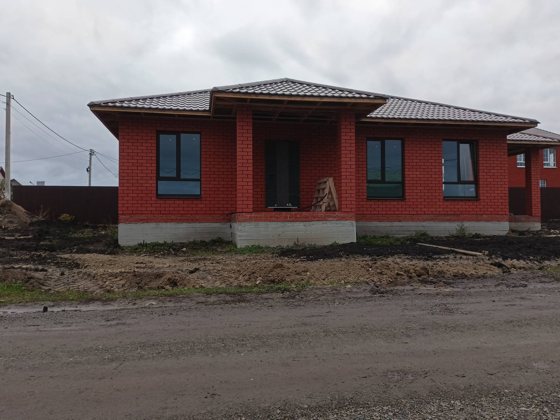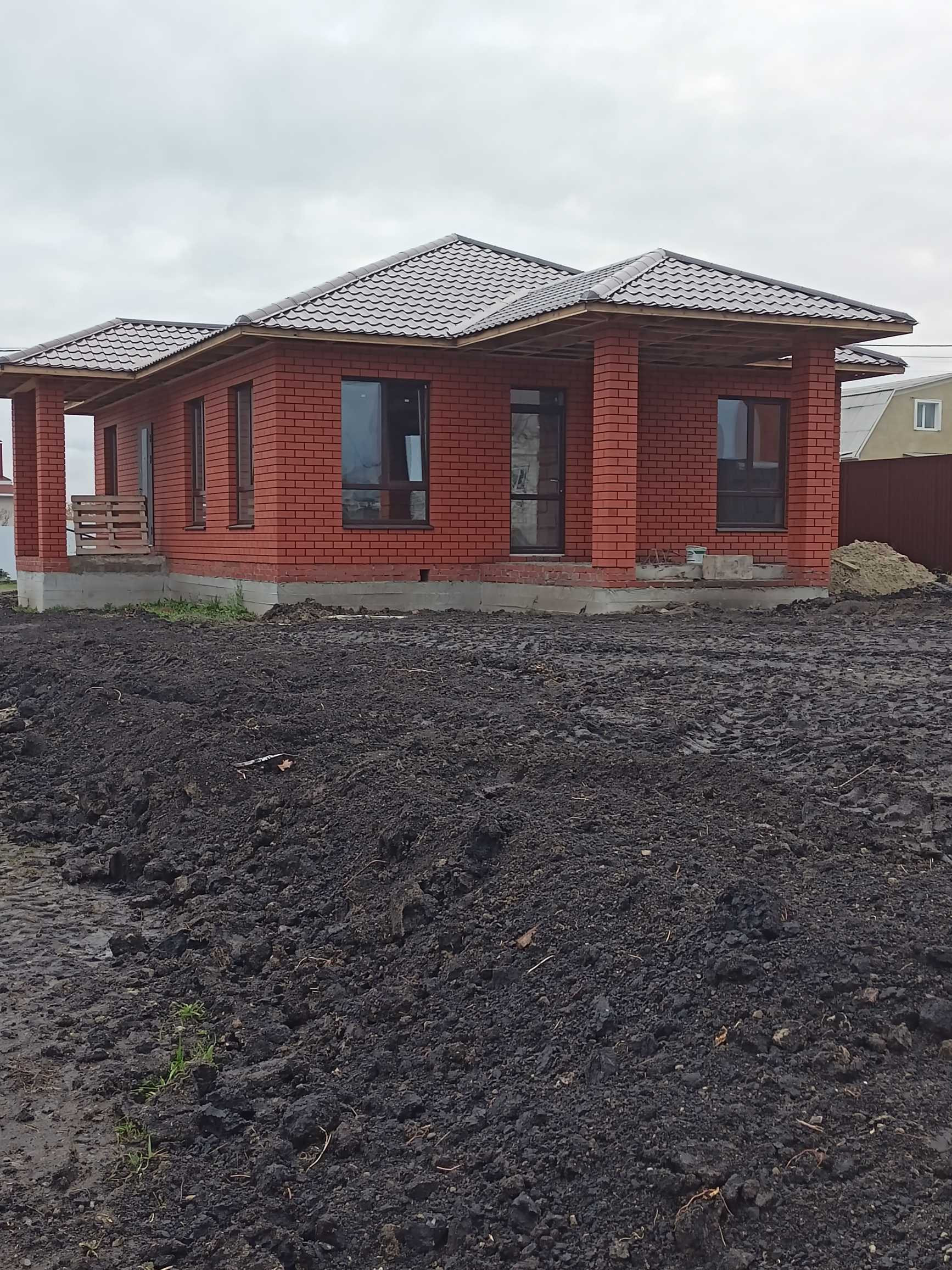 Общая площадь 112 кв.м. Год постройки 2022. Дом из пеноблока+облицовочный кирпич. Большие окна + веранда под общей крышей, штукатурка, стяжка, отопление, теплый пол, электрика, перегородки, входная металлическая дверь. Земельный участок 8 соток. Все коммуникации (вода своя скважина, слив 3 кольца, газ, свет).