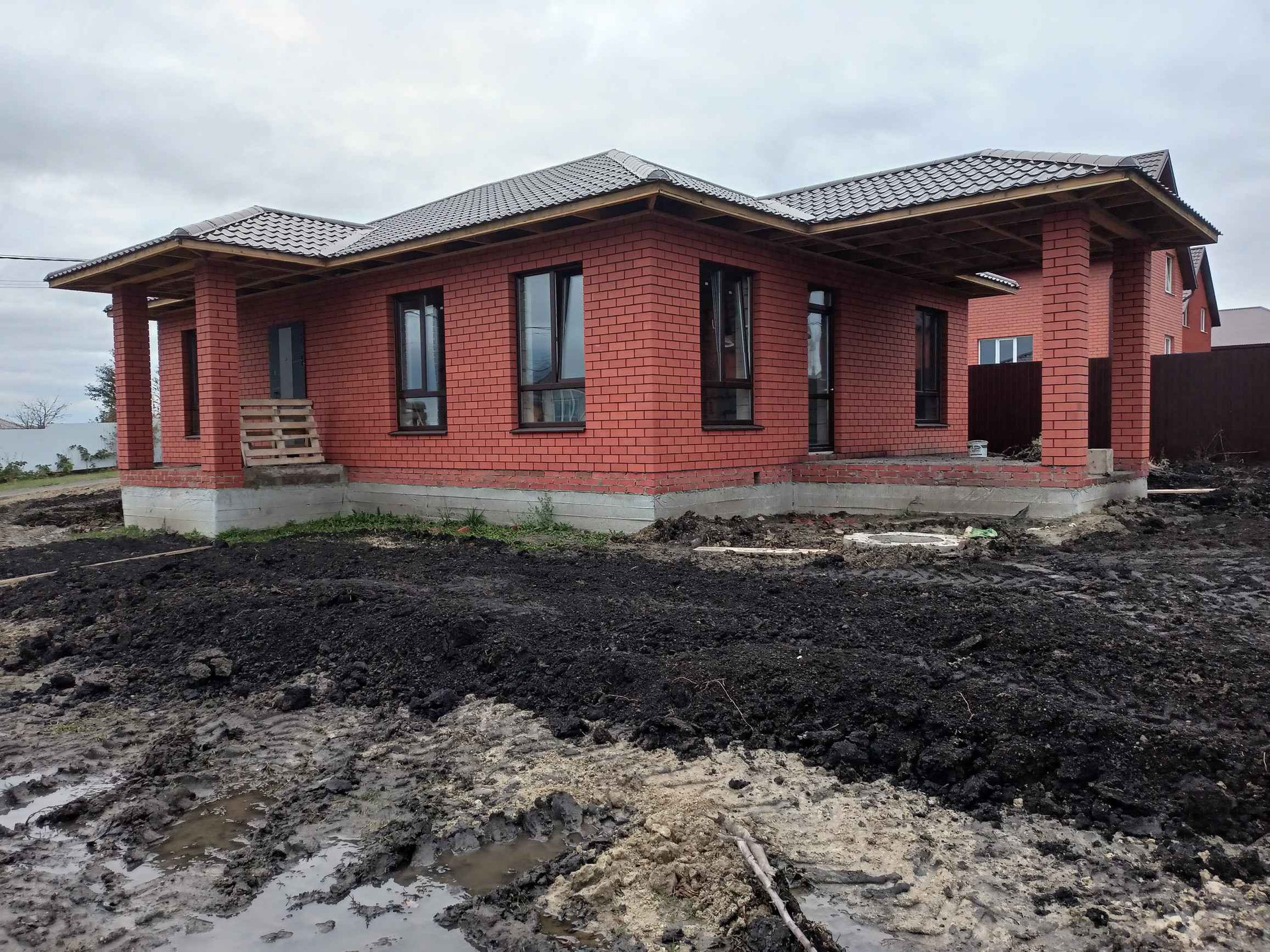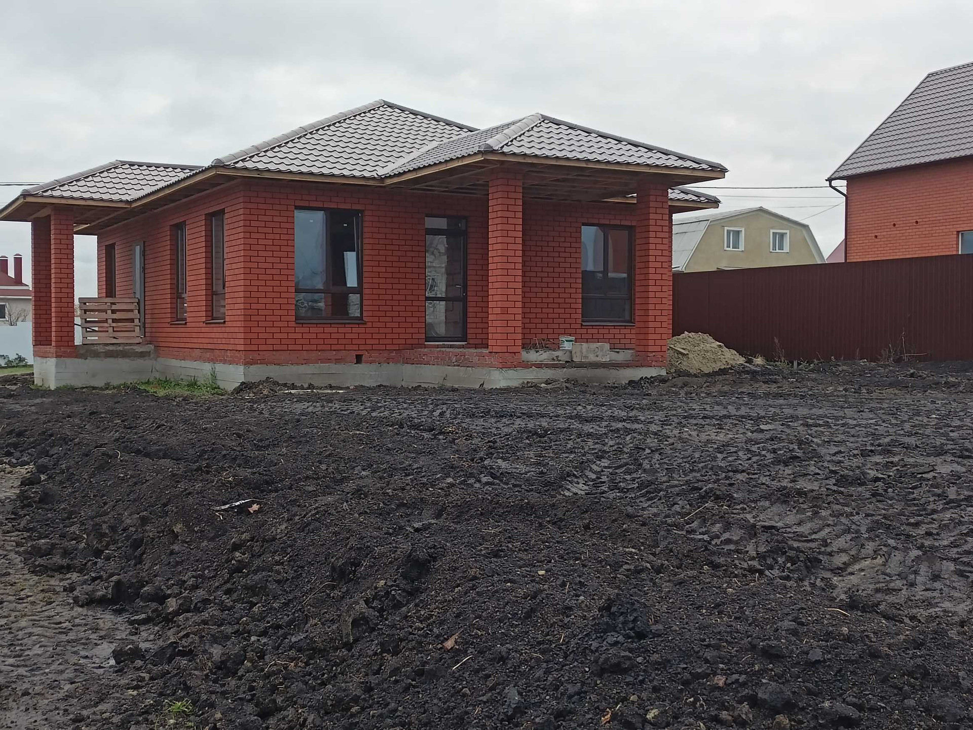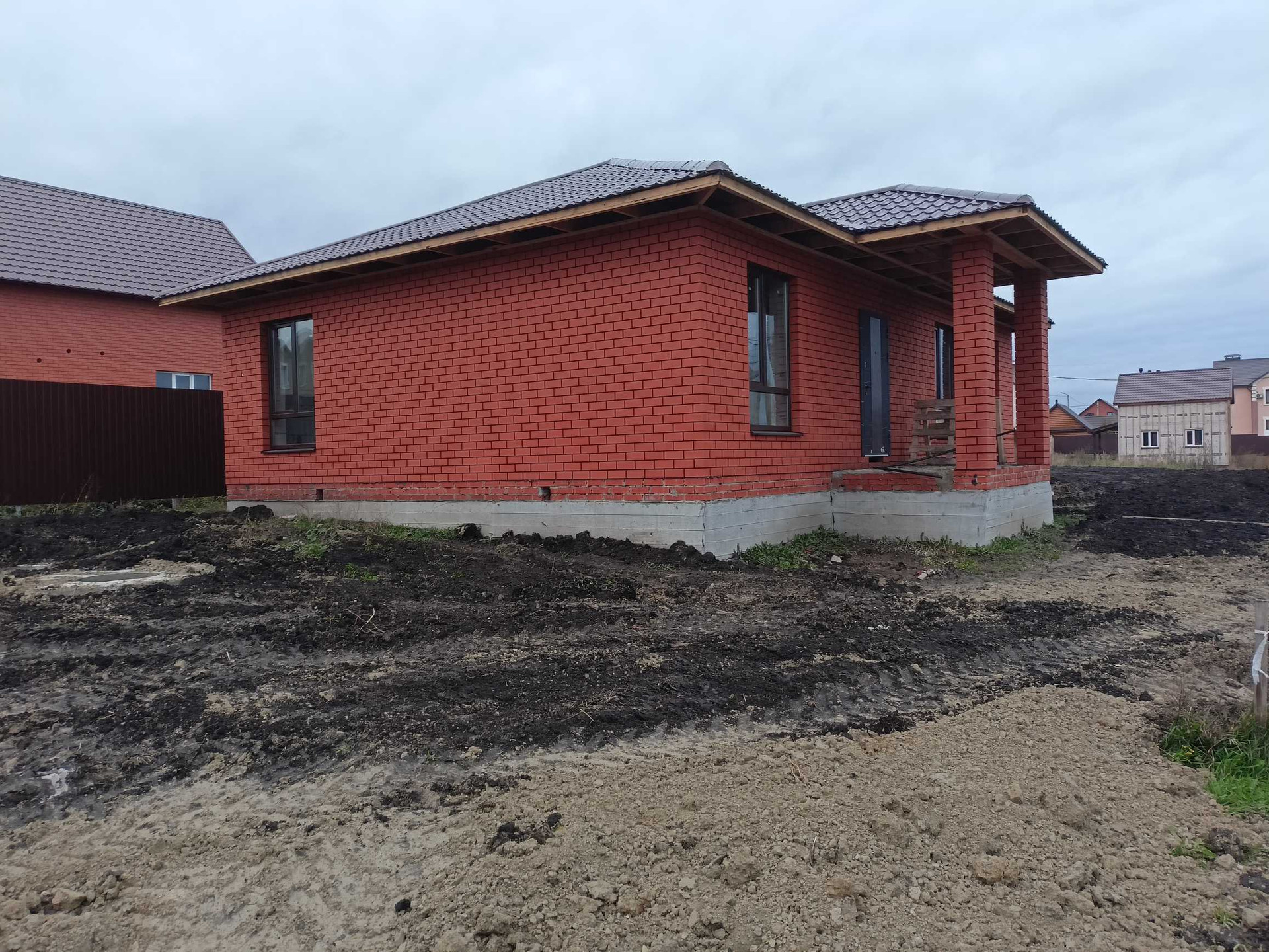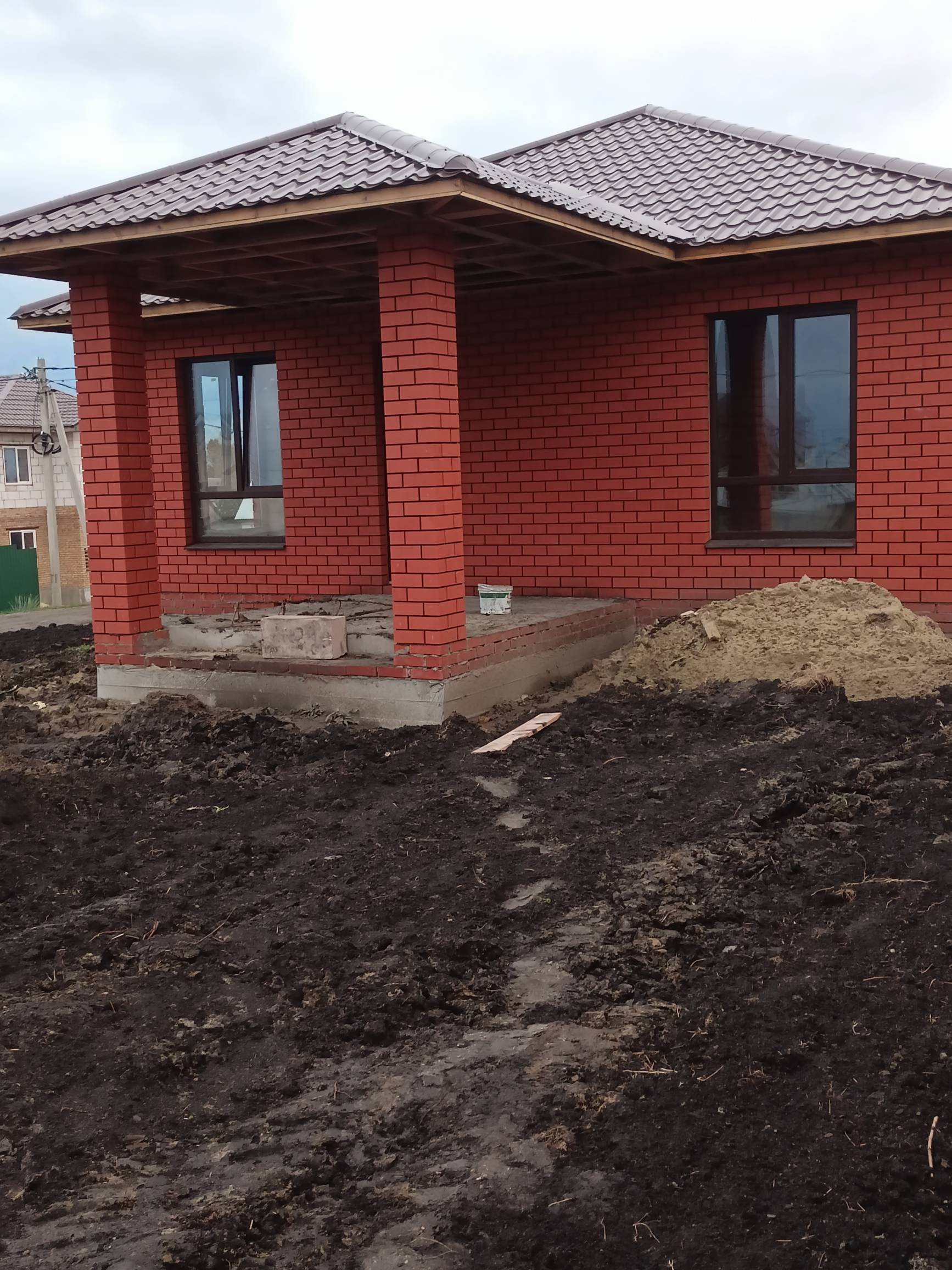 Общая площадь 112 кв.м. Год постройки 2022. Дом из пеноблока+облицовочный кирпич. Большие окна + веранда под общей крышей, штукатурка, стяжка, отопление, теплый пол, электрика, перегородки, входная металлическая дверь. Земельный участок 8 соток. Все коммуникации (вода своя скважина, слив 3 кольца, газ, свет).