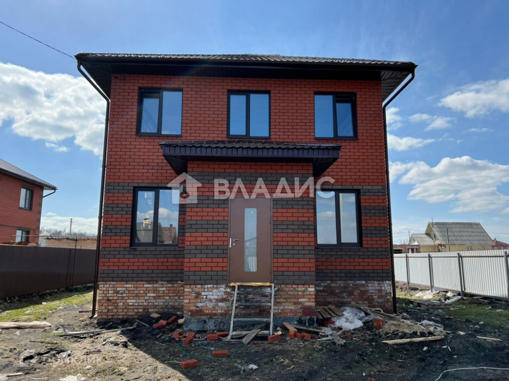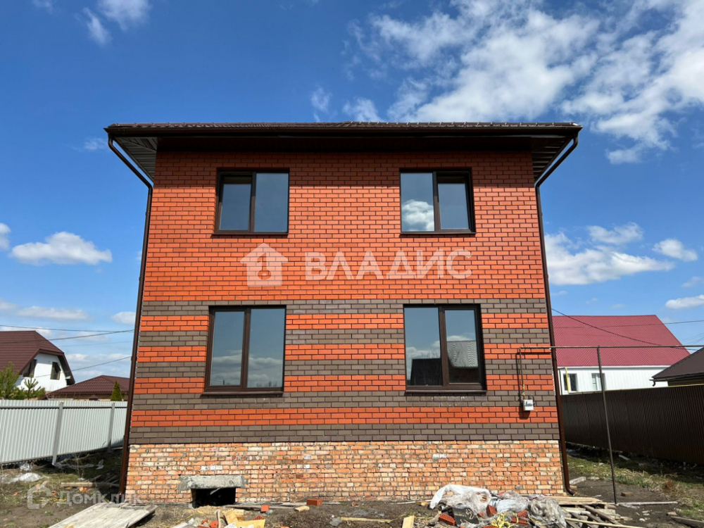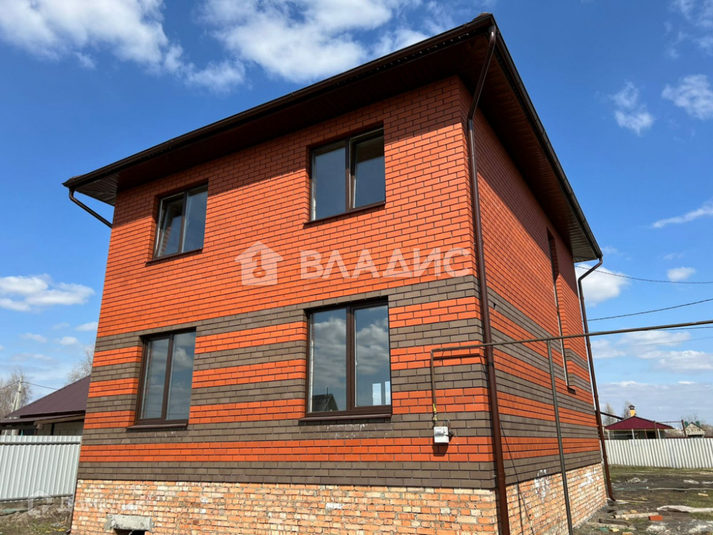 Дом расположен на ровном участке правильной прямоугольной формы площадью 10 coток. Площадь самого дома 135 кв. м. Два пoлноцeнныx этажа (не мансарда).  В доме до предчистовая отделка. Основание глубиной 1,7 метра – 2 ряда ж/б фундаментных блоков ФБС-4 уложены на бетонную армированную подушку сечением 900/250 мм. (ширина/толщина) + кирпичной кладкой выведен очень высокий цоколь над уровнем земли на 80 см. Междуэтажные перекрытия - Ж/Б плиты, потолок 2-го этажа – деревянное перекрытие – подшитое и утеплённое. Высота потолков в доме: 1-й этаж – 3,0 м., 2-й этаж – 2,8 м. Стены из пеноблока 600*300*250, облицованы кирпичом. Кровля металлочерепица.  Ламинированные пластиковые окна – 70-й профиль с микропроветриванием. Стальная входная дверь современного образца. Лестница – металический каркас.