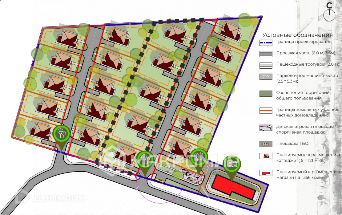 -  Коттеджи расположены в окружении небольшой березовой рощи, также на некоторых участках будут сохранены взрослые березы.