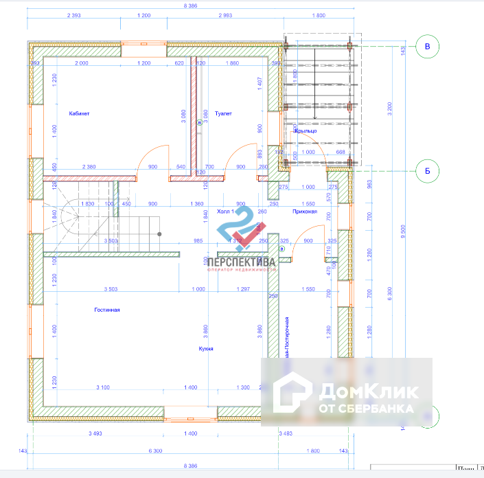 - Холл с лестницей, ведущей на второй этаж;