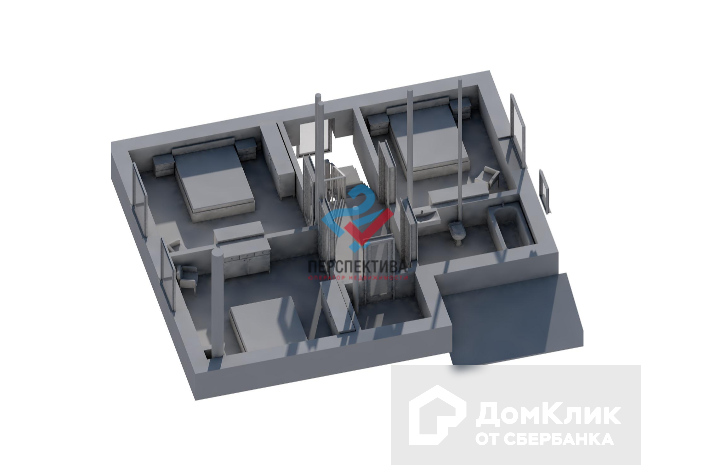 - Три жилые комнаты, небольшая кладовка-гардеробная и санузел