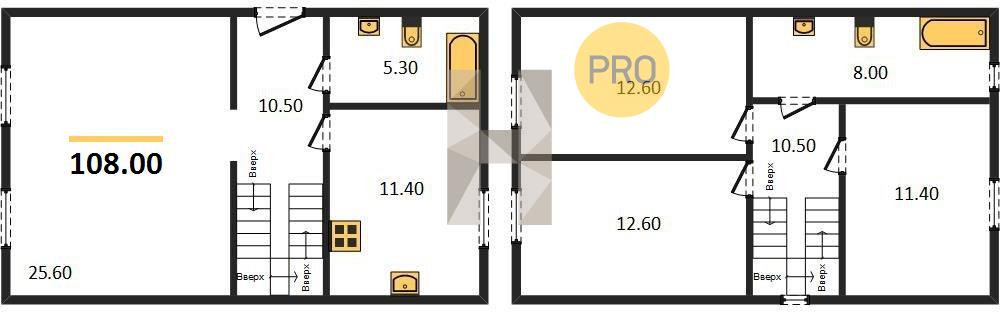 На первом этаже будут расположены: холл, уютная кухня-студия, комната, санузел. На втором этаже: санузел и три комнаты. Дом строится с соблюдением всех технологических требований, сдается со всеми подключенными коммуникациями (газ, свет, вода, канализация).