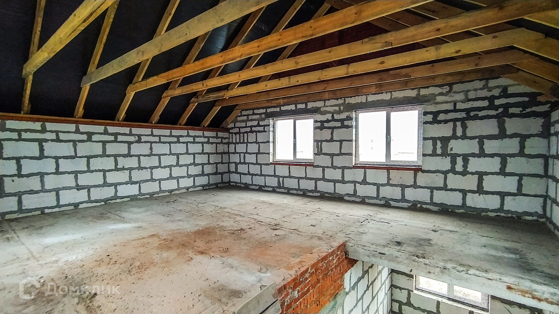 Стены из газобетона, обложены кирпичом. Бетонные перекрытия. Крыша - металлочерепица.