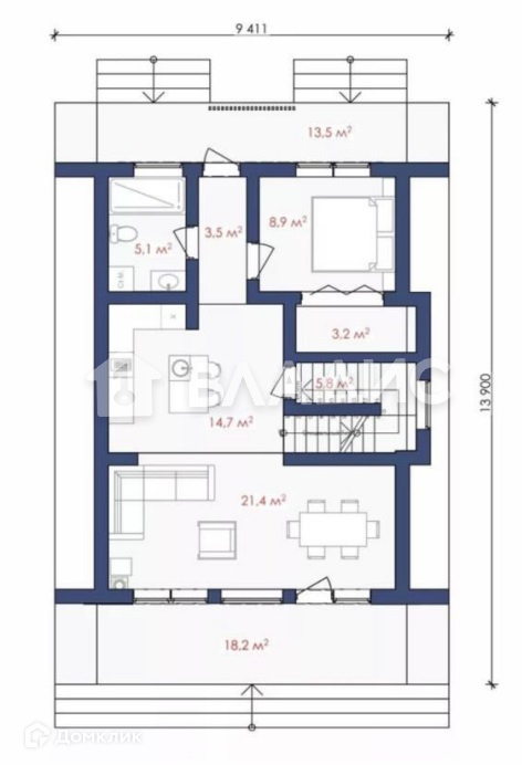 Террасы – 18.2 + 13.5 кв.м. кв.м.