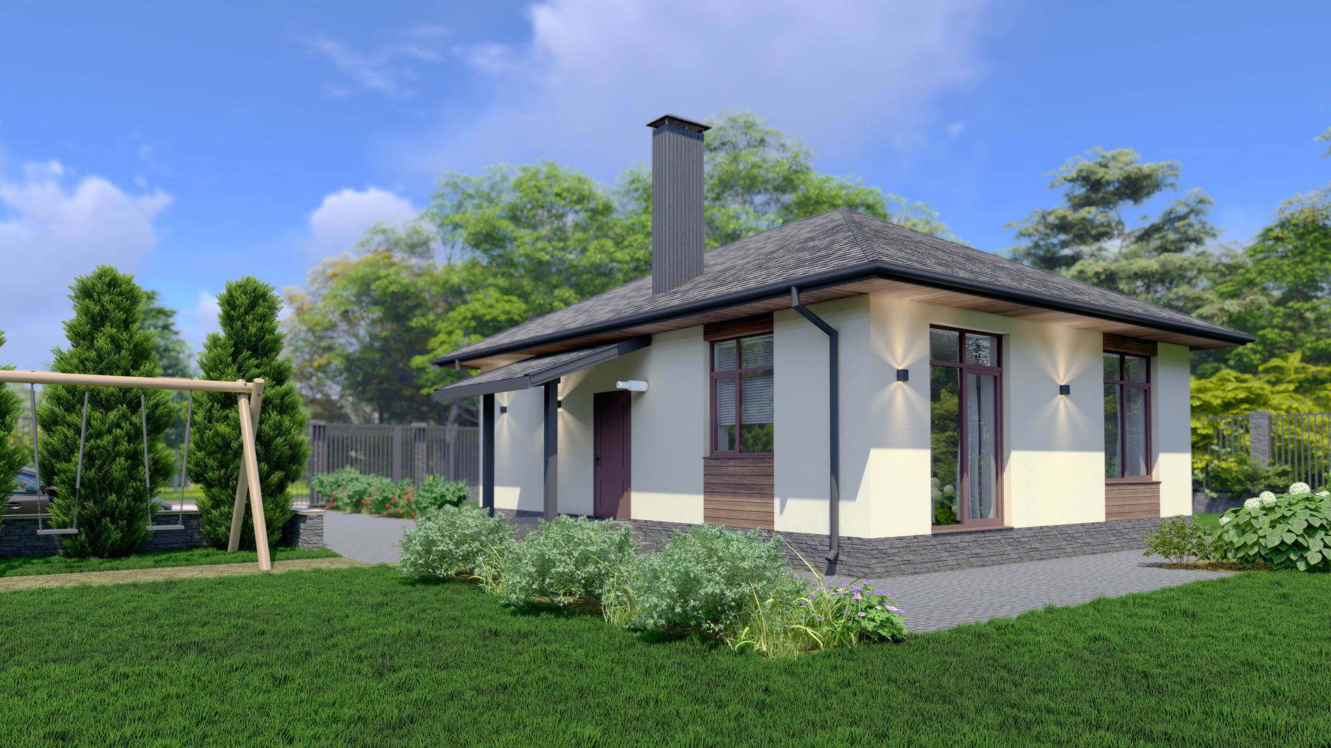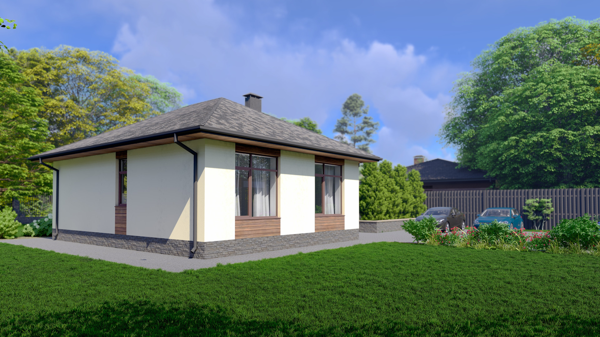 Стены – газоблок + декоративная штукатурка