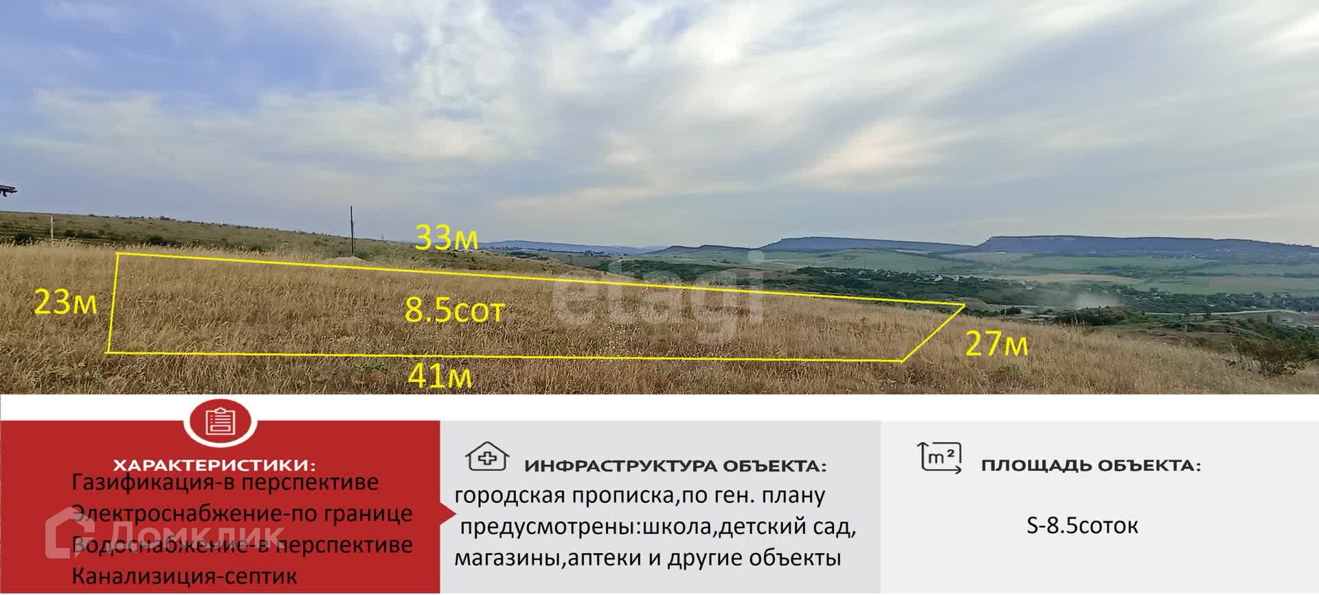 Площадь участка 8.5 сот.