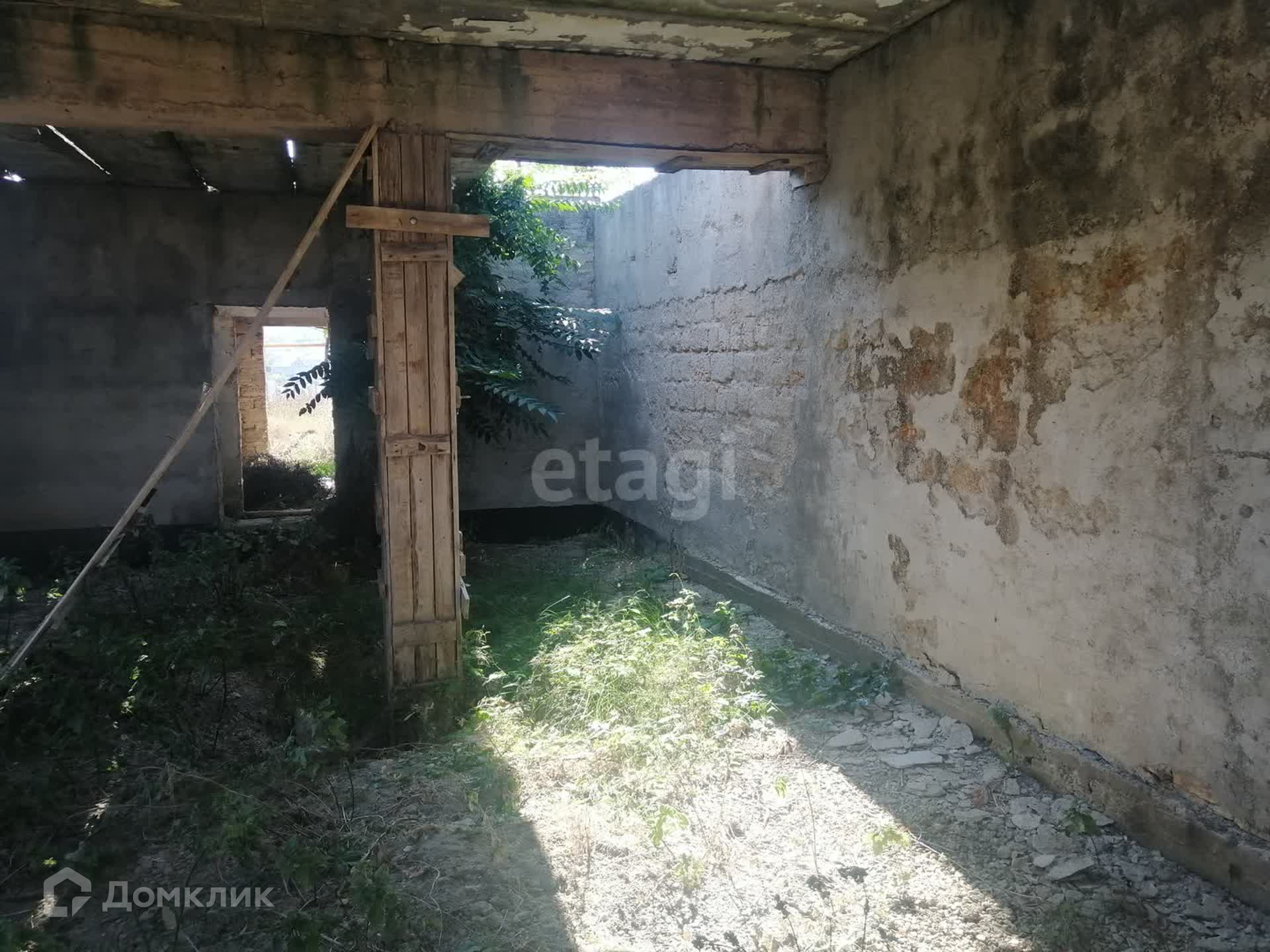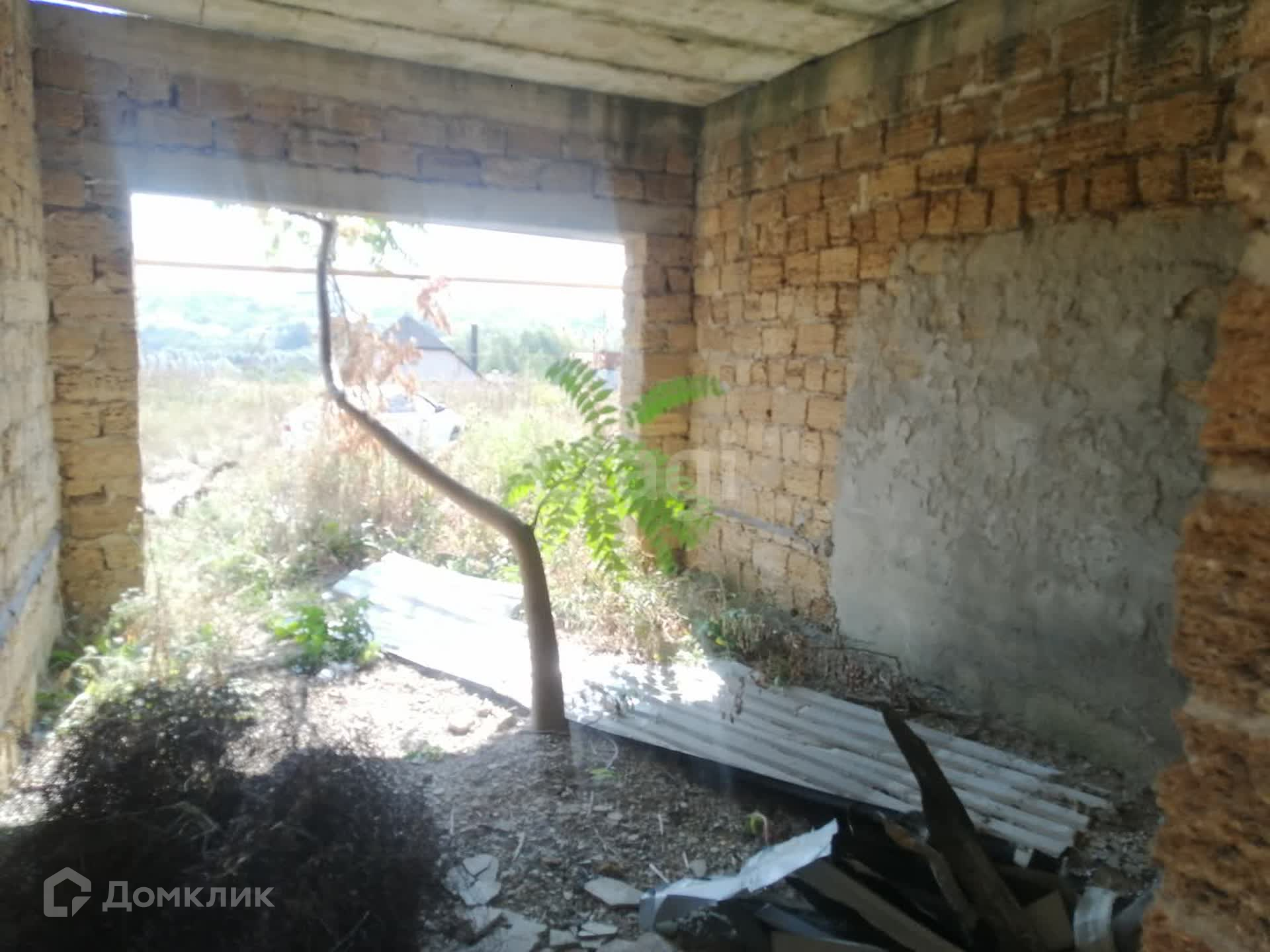 Находиться недостроенный дом (Ракушка), с установленными плита перекрытиями- первый этаж + 2 гаража. Фундамент планировался с учетом двухэтажного дома, глубина 1,3 м. Участок огорожен.