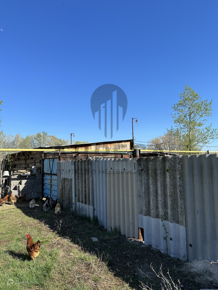 Который огорожен забором из профлиста.