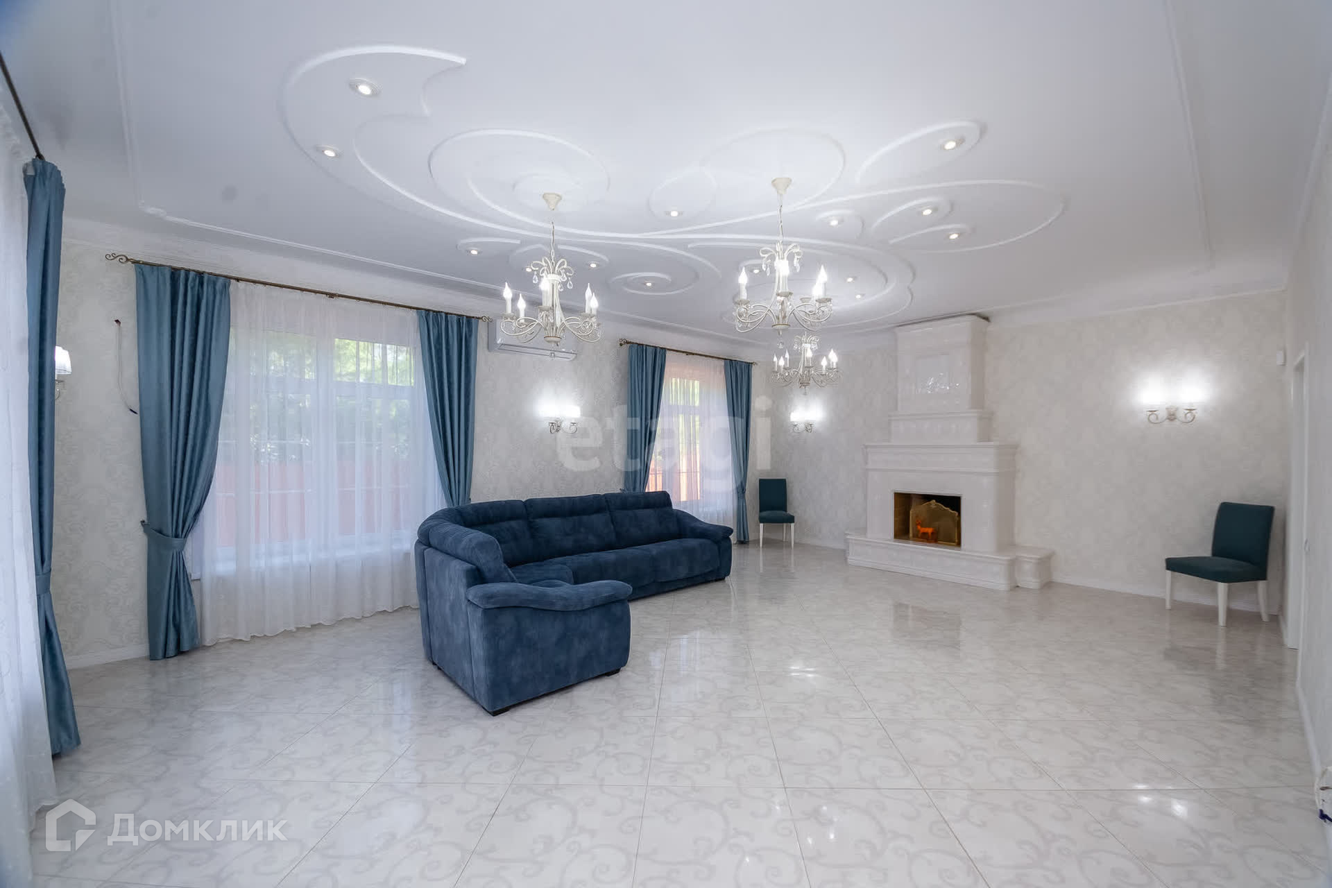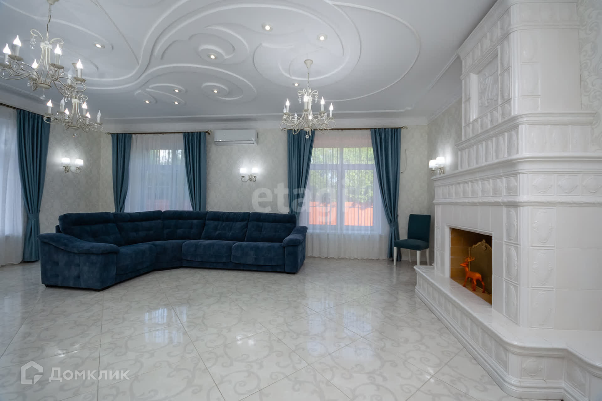гостиная с действующим дровяным камином с натуральными изразцами,