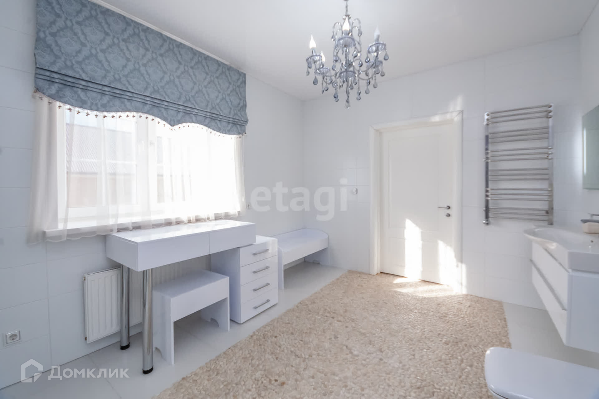 На втором этаже расположены мастер-спальня со своим большим санузлом, спальня, кабинет, санузел, постирочная, гардеробная, большой холл-библиотека с выходом на французский балкон.
