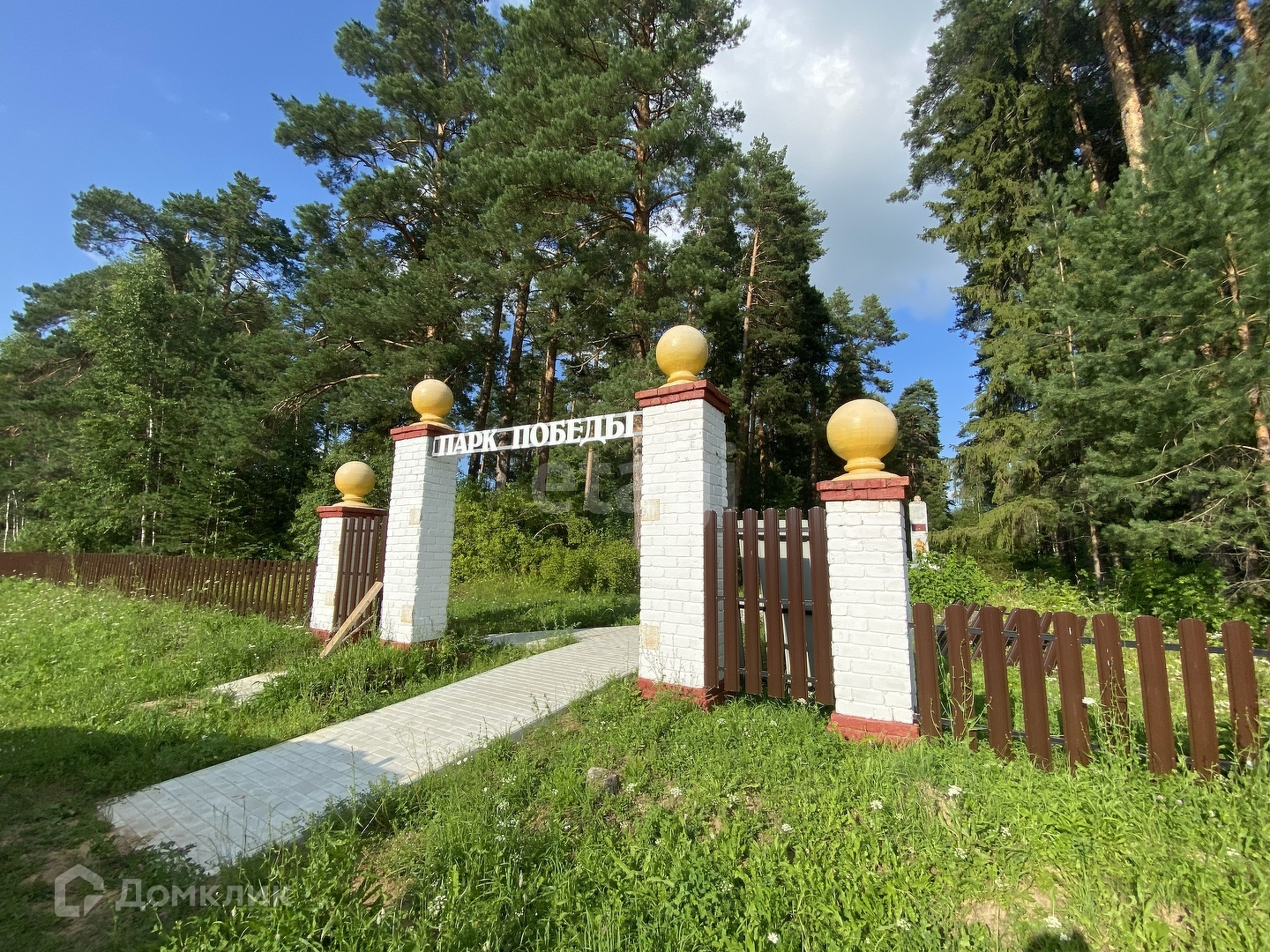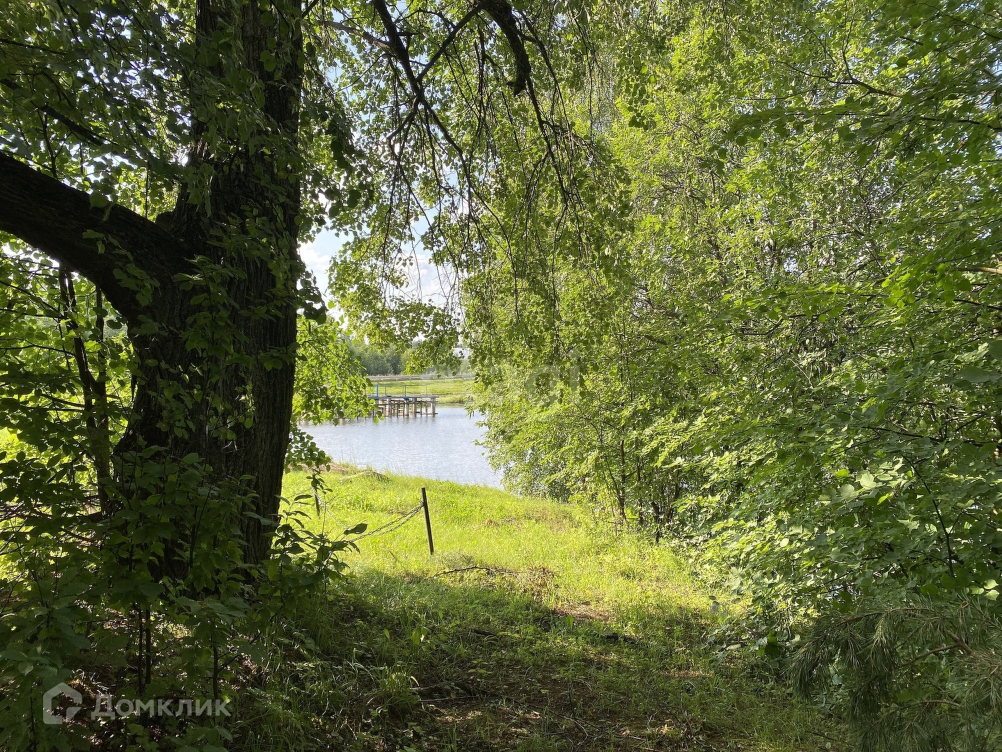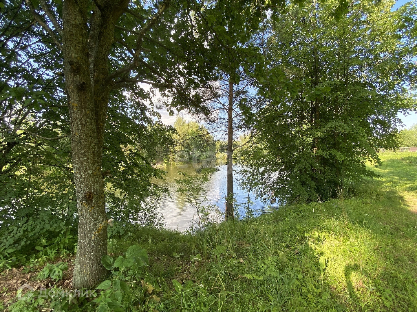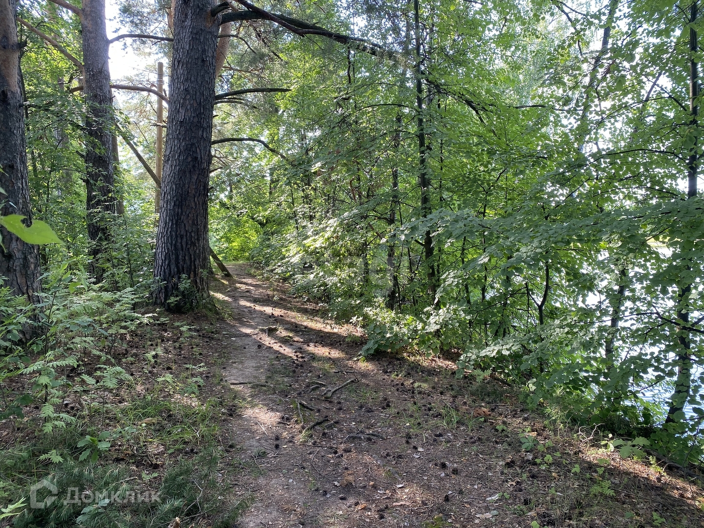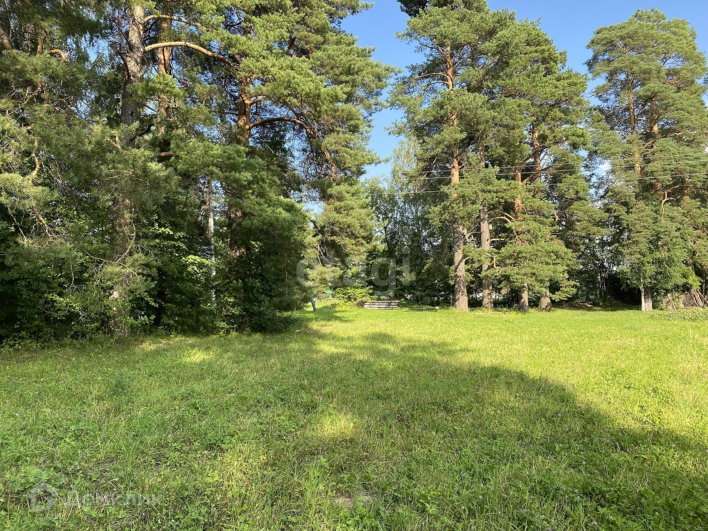 По краю участка растут огромные сосны, собственный выход к реке.