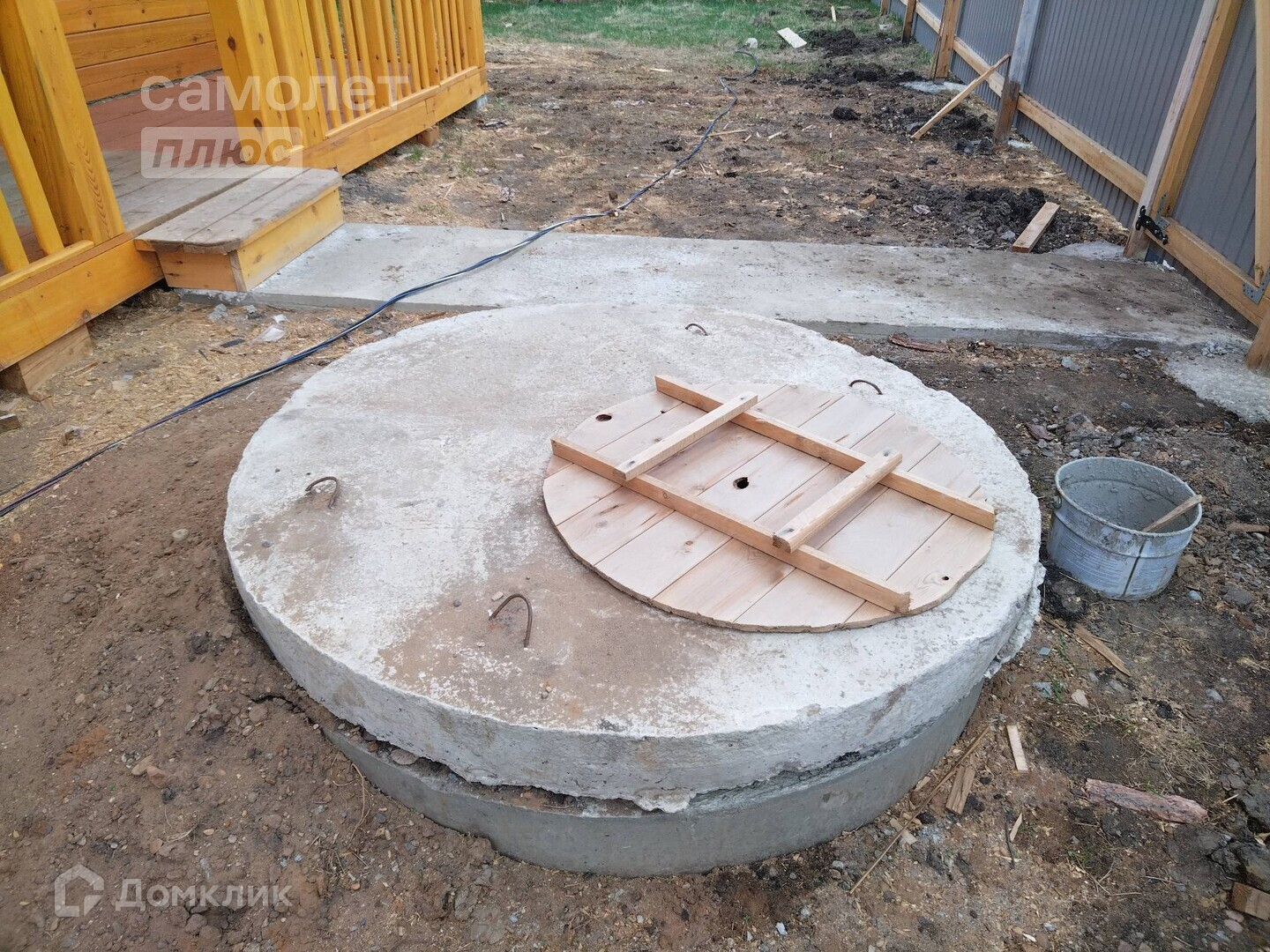 Дом расположен на возвышенности на земельном участке площадью 12 соток. Участок обнесен забором.