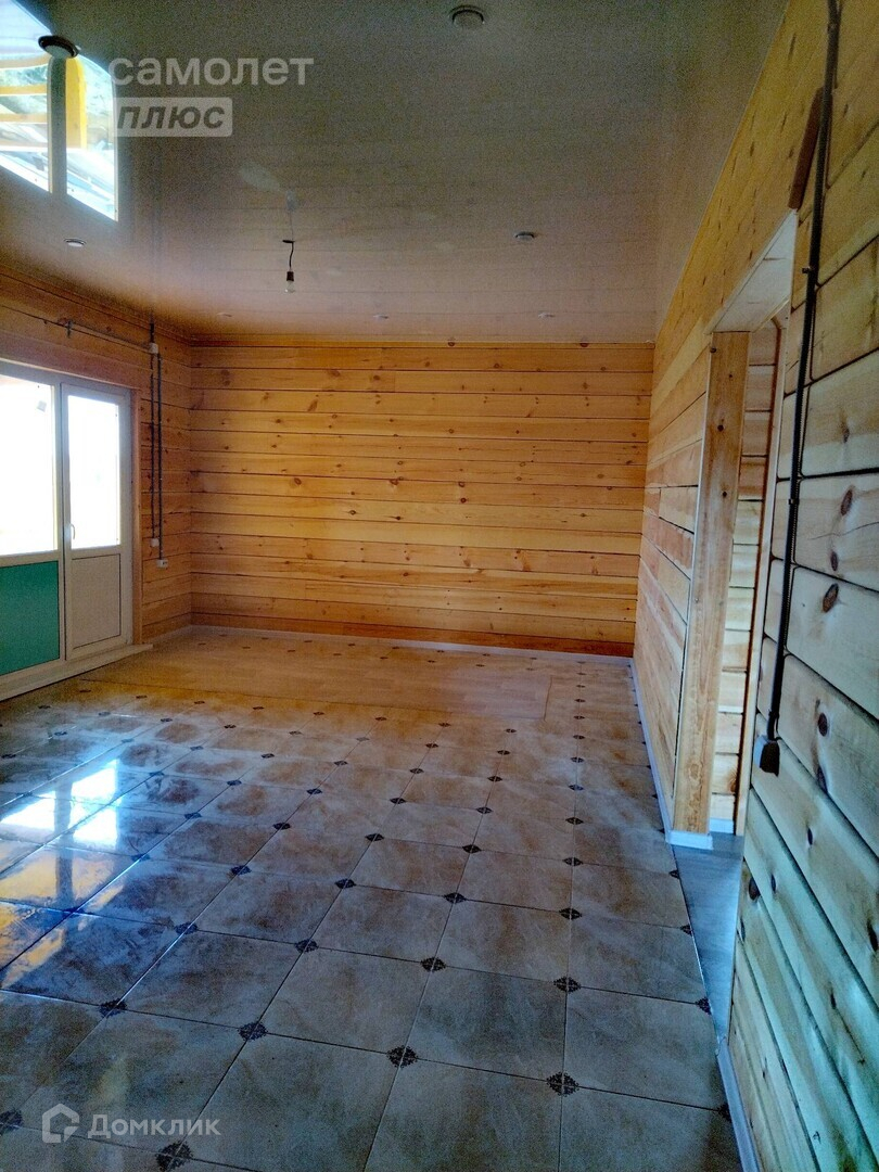 Дом площадью 150 кв.м. построен из бруса, что обеспечивает отличную теплоизоляцию и долговечность.