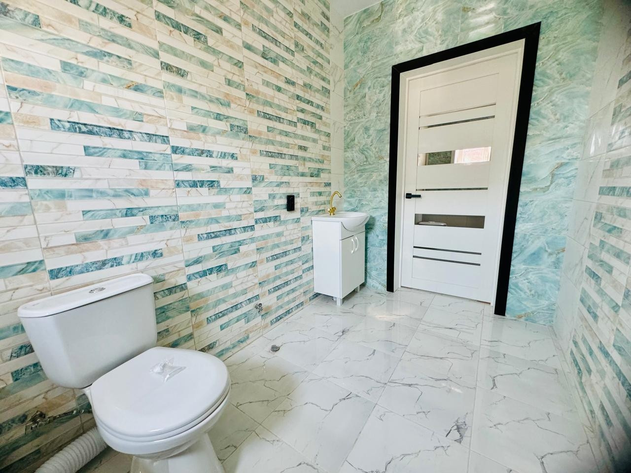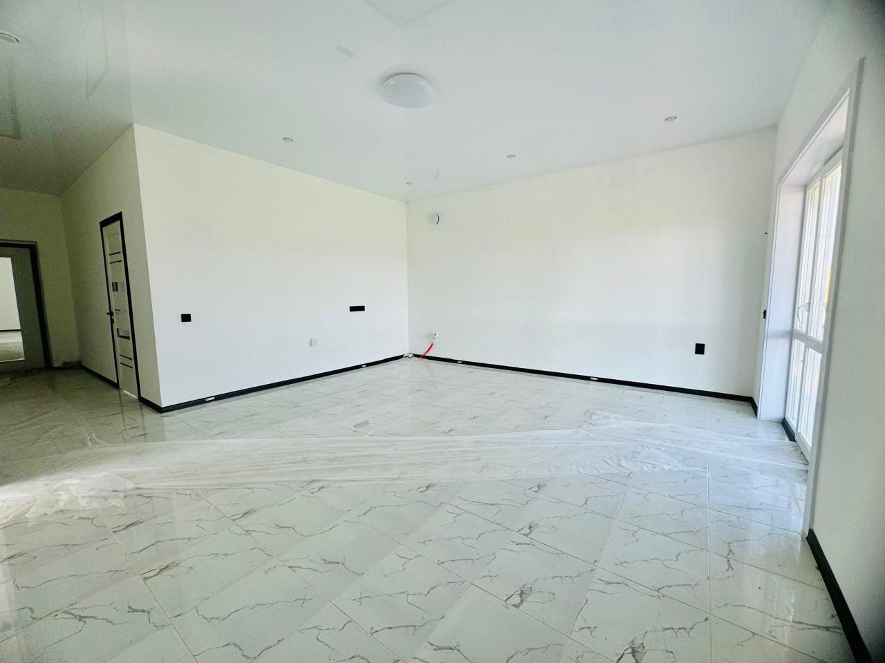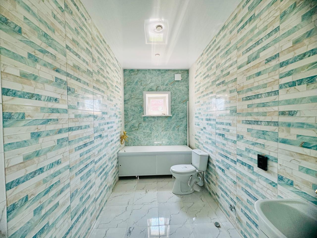 Натяжные глянцевые потолки, точечные светильники. Яркое освещение, даже в пасмурные дни в доме светло и уютно! Установлена сантехника: унитаз, душевая кабина, раковина.