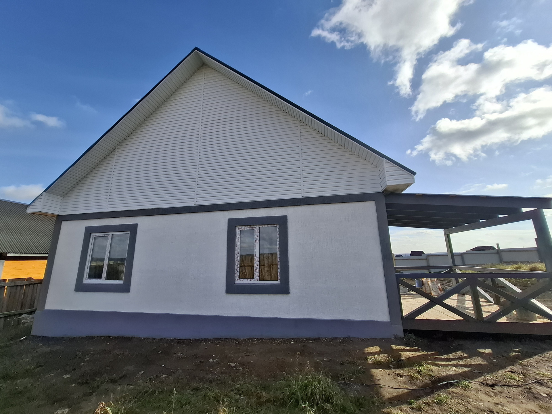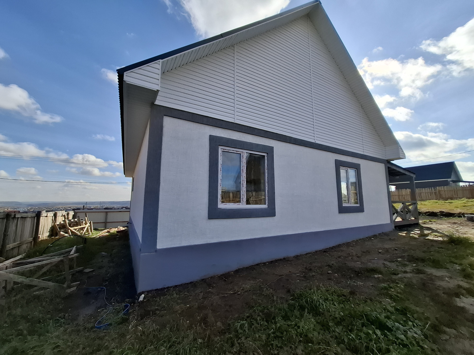 Вашему вниманию представлен дом 180 м2, в доме 2 раздельных комнаты, просторная кухня-гостиная.  Участок абсолютно ровный, огорожен забором, с лицевой стороны металлопрофиль.