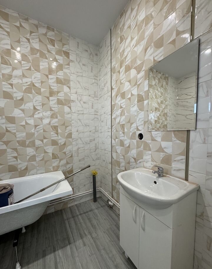 Установлена сантехника: унитаз, ванна, раковина.