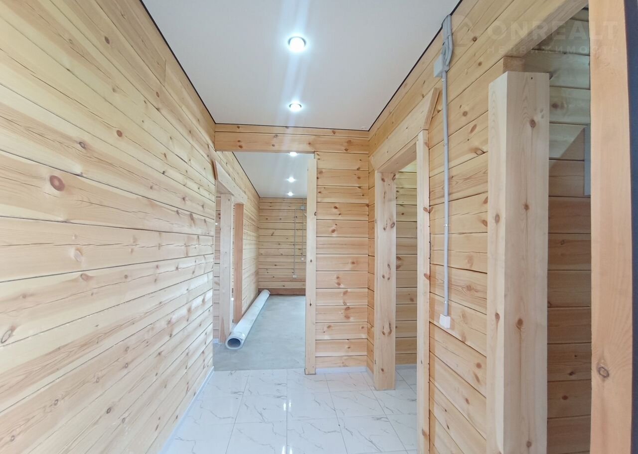 Отопление-тёплый пол. Натяжные потолки с точечными светильниками. Брус отшлифованный обработан противопожарной пропиткой, снаружи покрашен сосной.