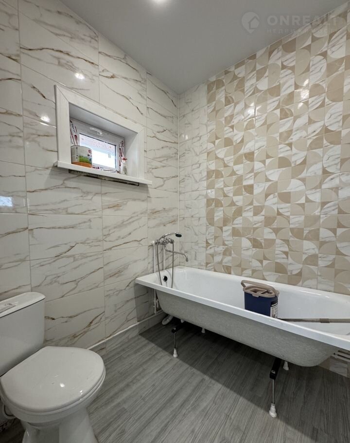 Установлена сантехника: унитаз, ванна, раковина.