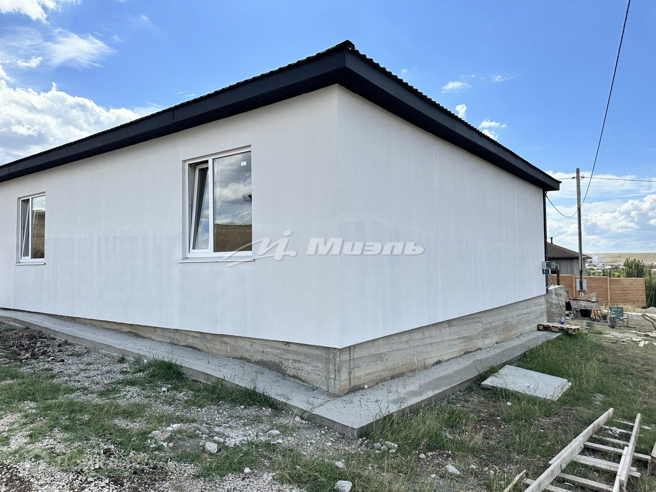 Хороший прочный фундамент, армированный залитый монолитом в районе дверных и оконных проемов армопояс, стены выложены с газобетона, фасад утеплен экструдером (5 мм), крыша утеплена минватой (15 мм), выкопана глубокая скважина с чистейшей питьевой водой.