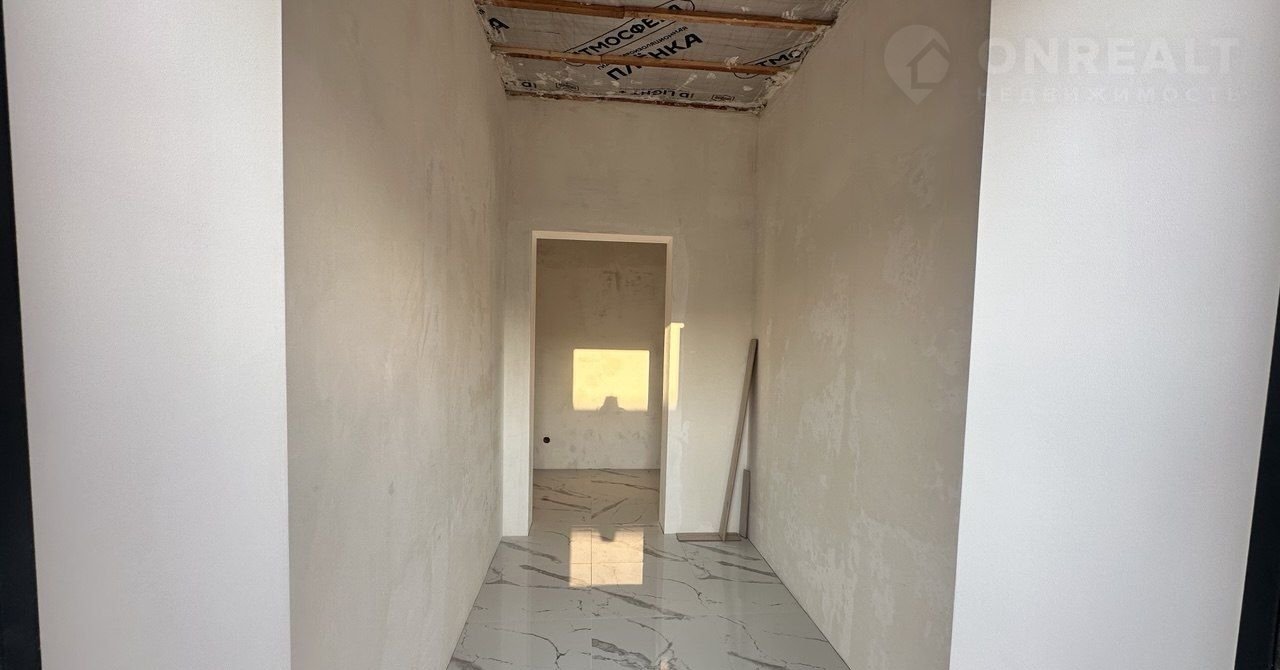 Построен из ракушки 40 см, утеплён. Строительство выполнено с учетом сейсмоактивности региона - фундамент: армированная - 20 см, плита. Высокие потолки 3,1 метра.
