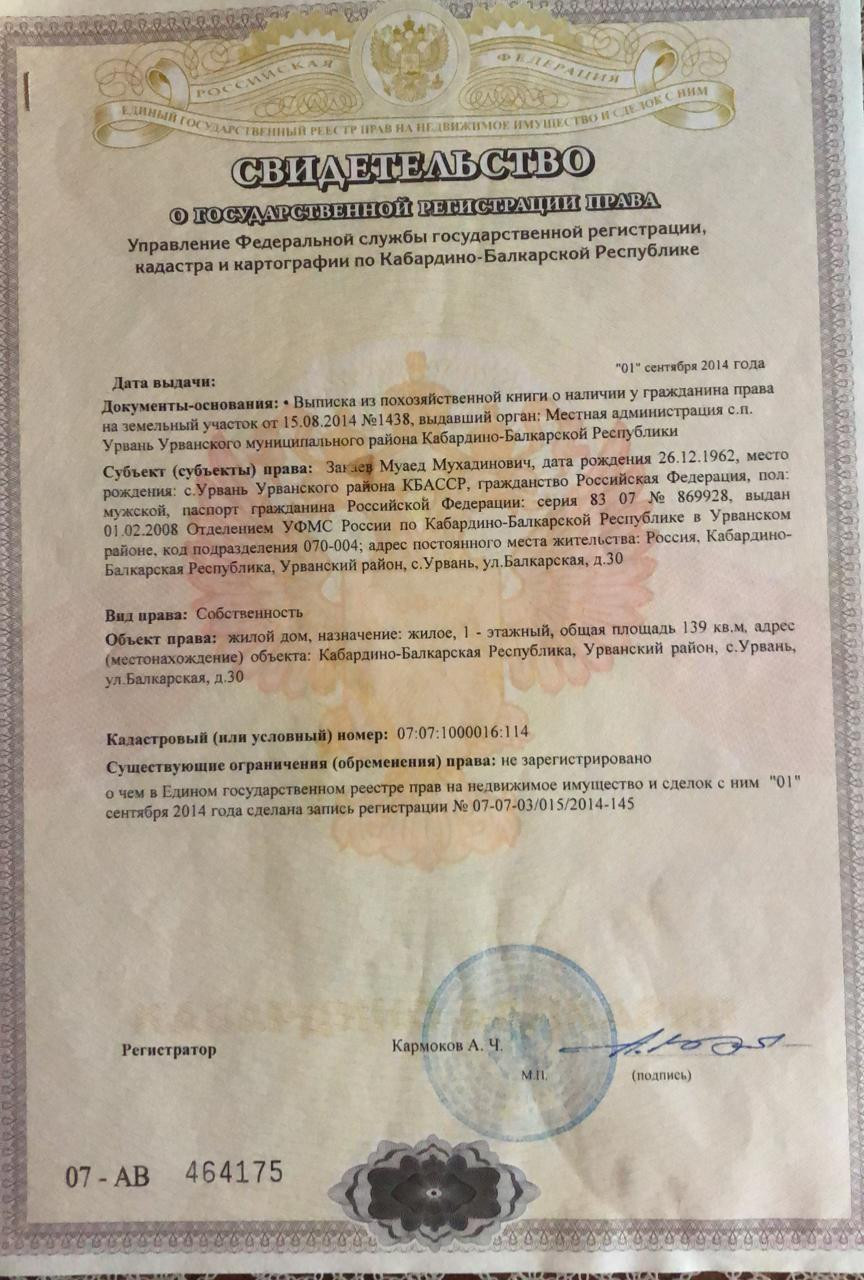 Кабардино-Балкариия, село Урвань, Балкарская улица, 30