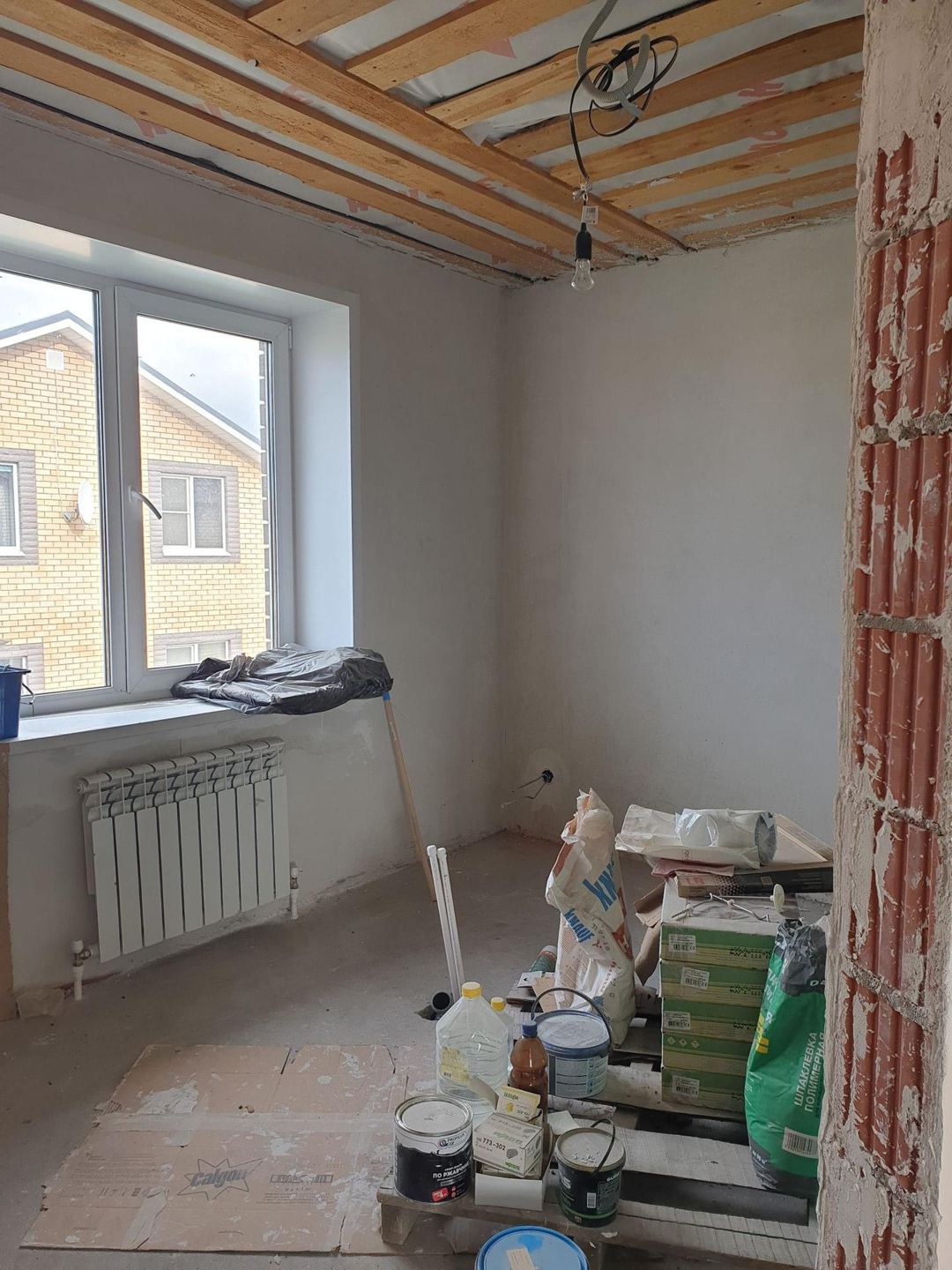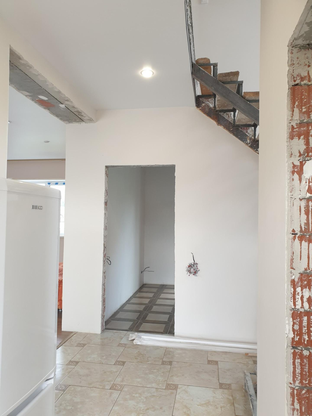 ● Отделка дома - частично выполнен ремонт, все стены выровнены под покраску, чатично в комнатах сделаны натяжные потолки, ламинат, покрашены стены, разведена электрика с тв антенной. На первом этаже полностью отделан кафелем санузел и полностью сделан пол первого этажа плиткой. Состояние дома жилое, можно заехать и в процессе доделать ремонт. В доме своя индивидуальная скважина.