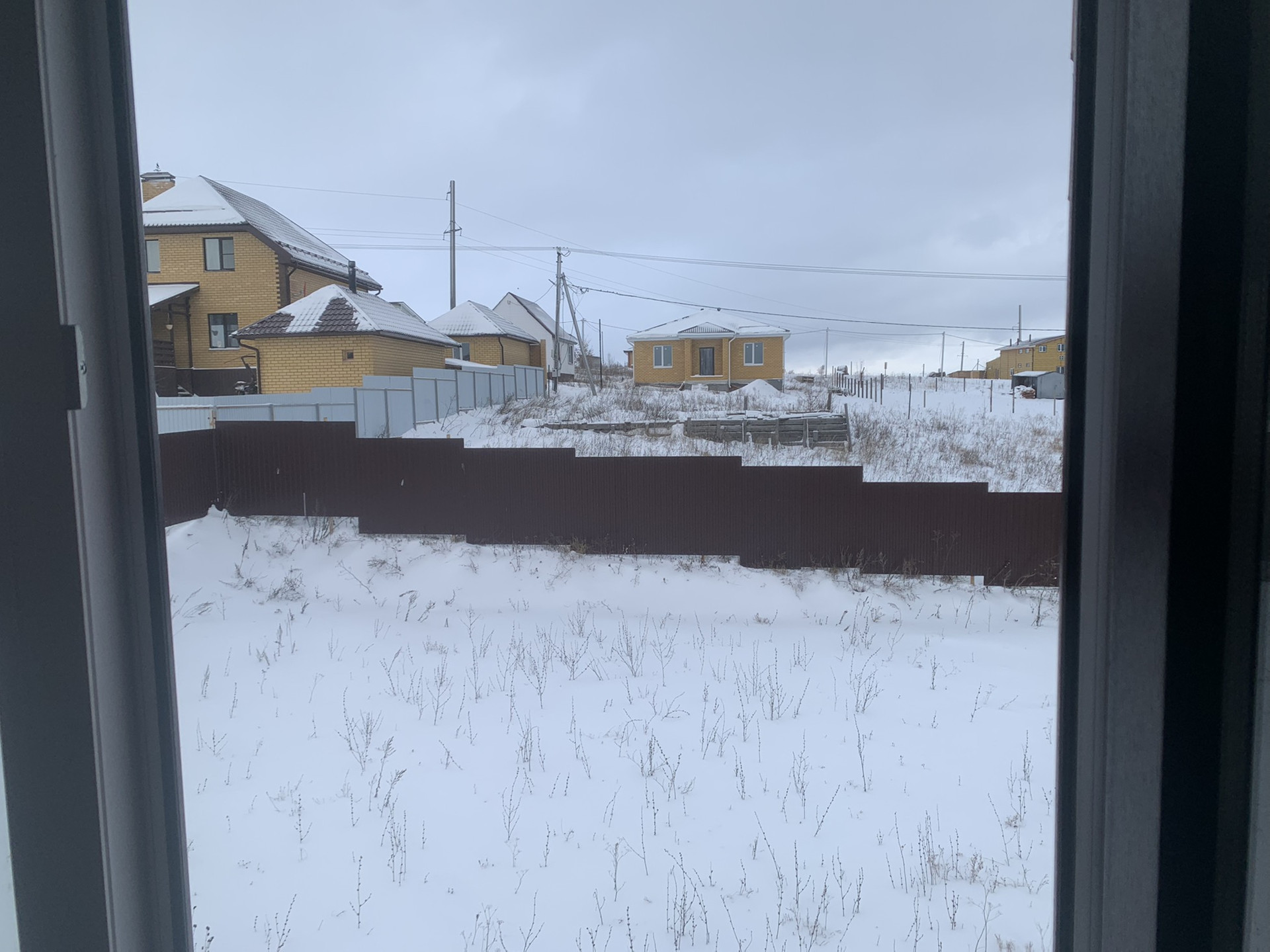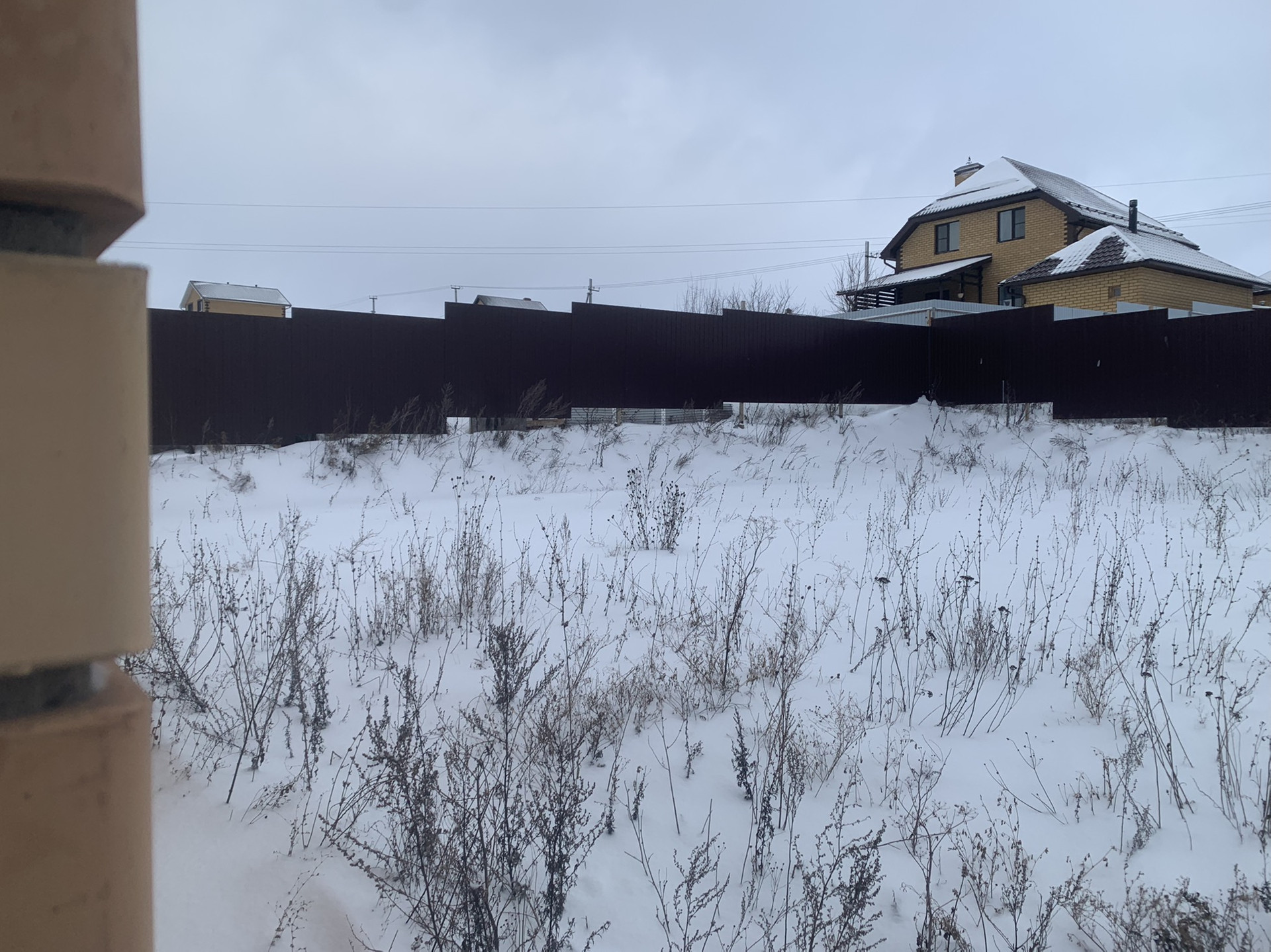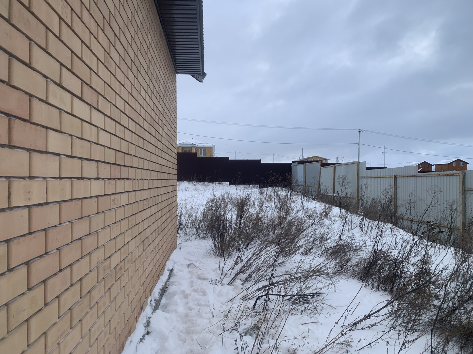 Участок выровненный и огорожен забором из профнастила с трёх сторон. Два парковочных места выполнены щебнем.