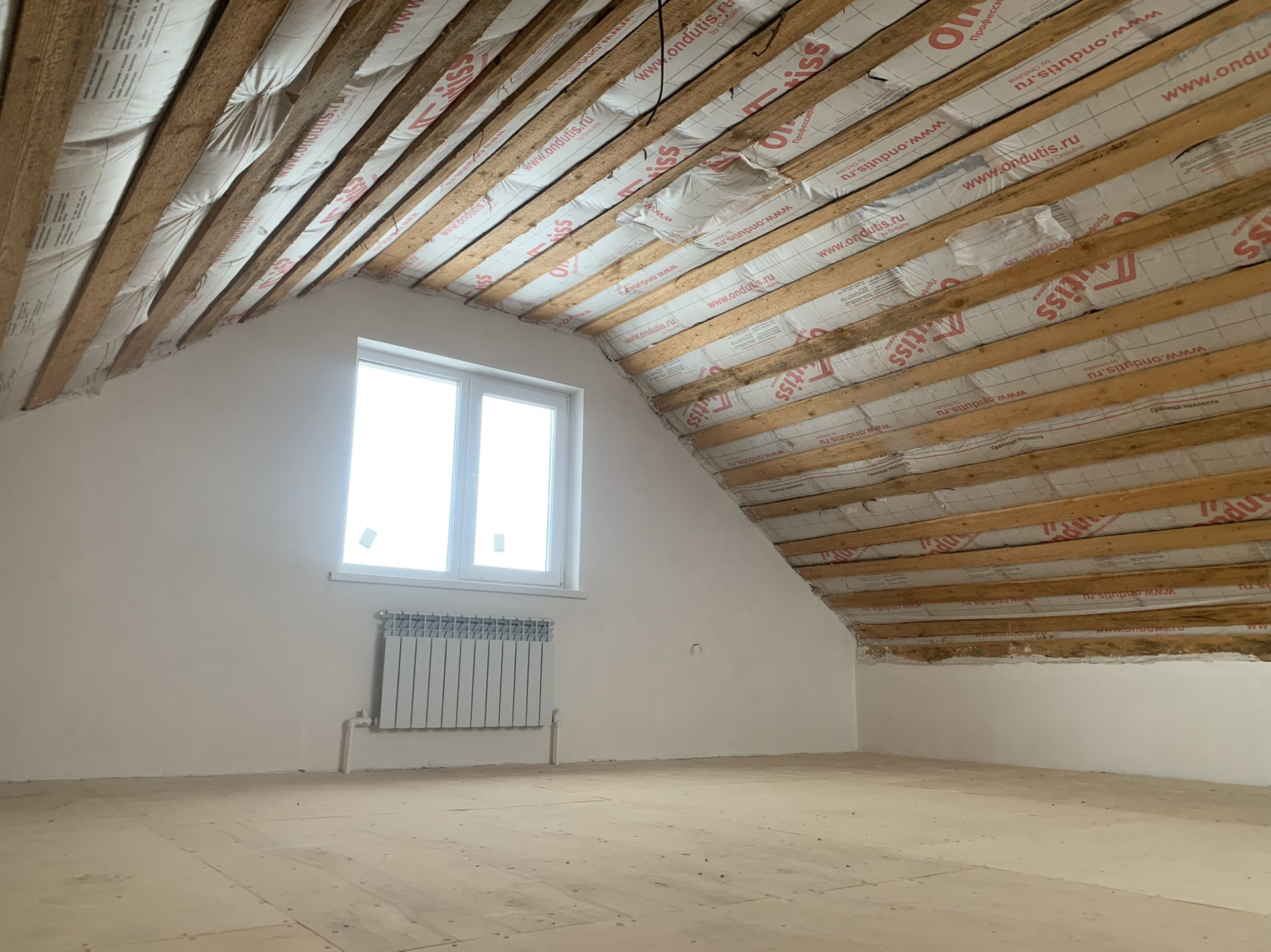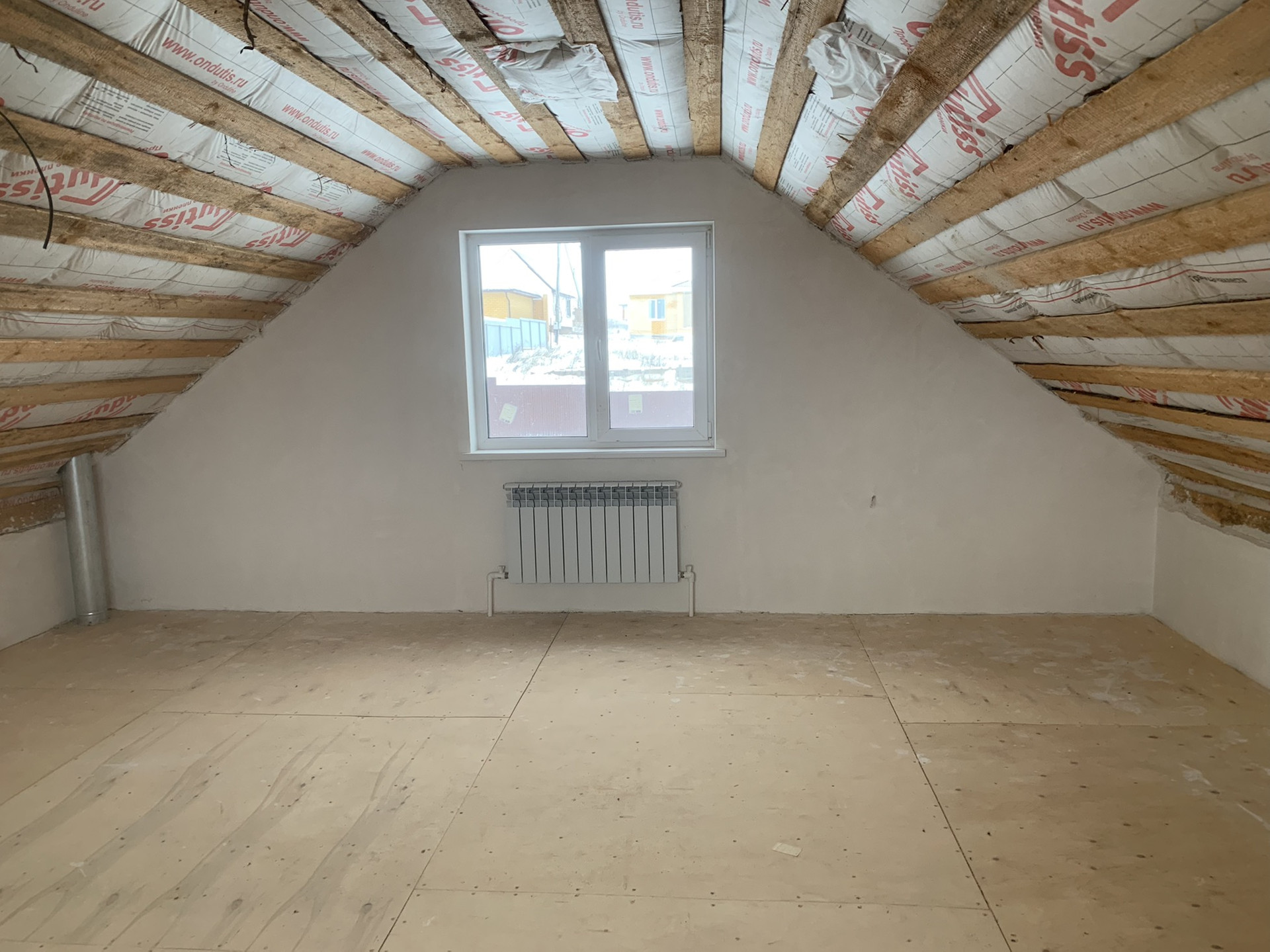 Полы второго этажа выровнены фанерой с несущей половой доской.