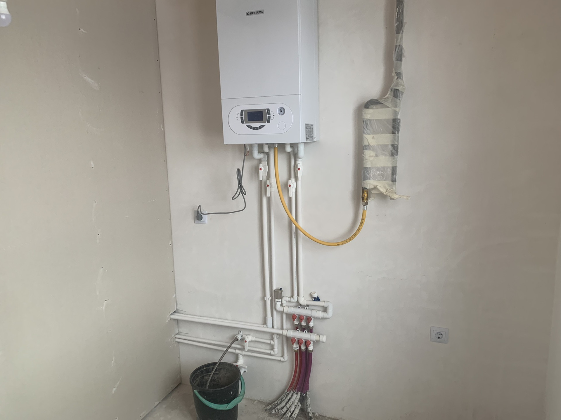 Отопление газовое. Установлена система тёплых полов на первом этаже и радиаторы на втором этаже. Котёл Kentatsu. Отопление работает.