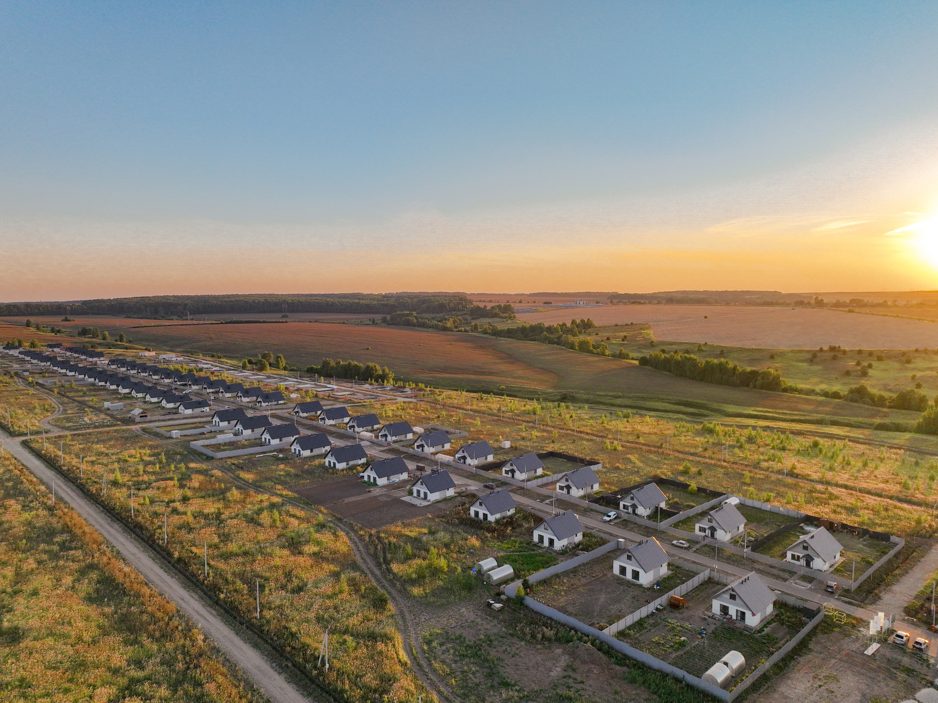 — Дома и заборы в едином архитектурном стиле;