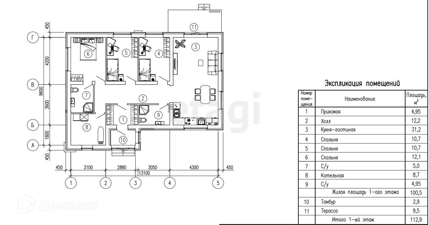 Общая площадь 112.9 м2