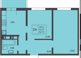 Продажа 2-комнатной квартиры, 51.8 м2