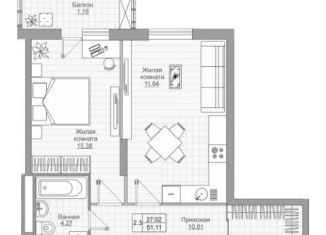 Продажа двухкомнатной квартиры, 50.8 м2, Сиреневая улица, 2