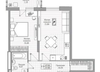 Продажа 2-ком. квартиры, 51.1 м2, улица Тёплых Встреч, 2
